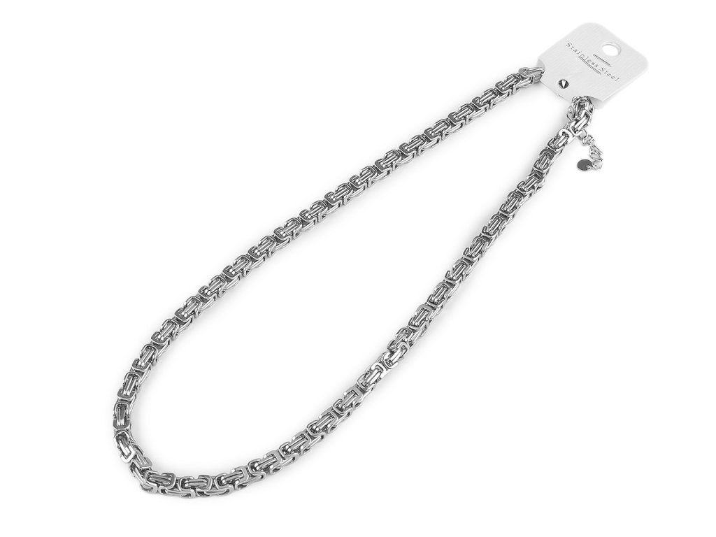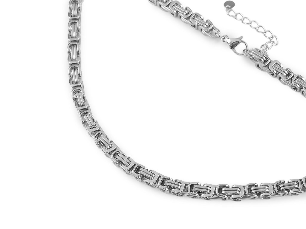 Robustní řetízek z kvalitní nerezové oceli nabízí stylový vzhled, skládá se z důmyslně propletených oček. Svým vzhledem i délkou je vhodný k nošení jak samostatně, tak i v kombinaci s dalšími řetízky. Zapíná se na karabinku a prodlužovací řetízek.- Délka: 55 cm