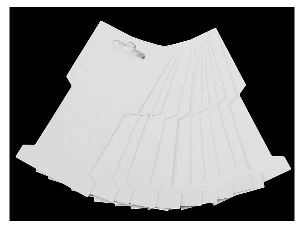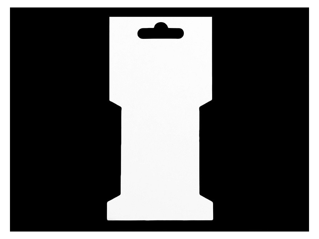 Papírovou kartu se závěsem využijete pro vystavení gumiček, sponek a v menším návinu také stuh, šňůr, krajek apod.- Rozměry: 6,6 x 13,2 cm