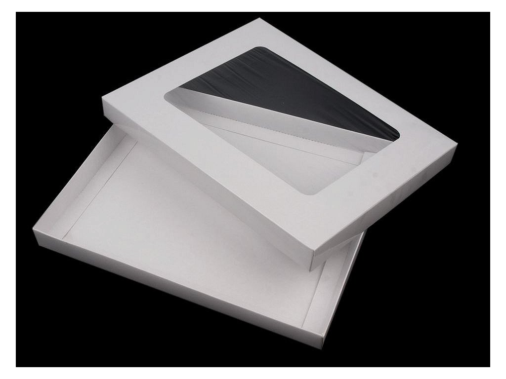 Krabice je vhodná na dárkové balení, je mírně lesklá. Průhled víka krabice je potažený fólií. Dodáváme v rozloženém stavu, skládat dle vyznačených ohybů.Rozměr průhledu je 14 x 19 cm. Připravili jsme pro vás foto návod na skládání.- Rozměry: 22 x 27 cm