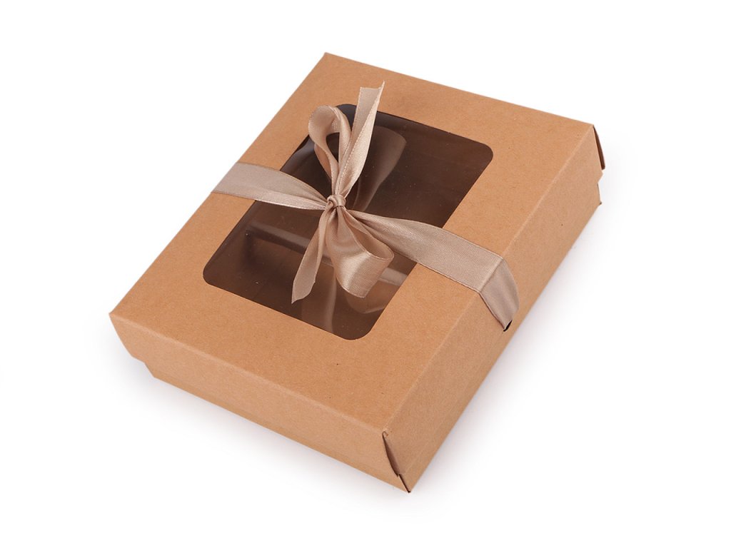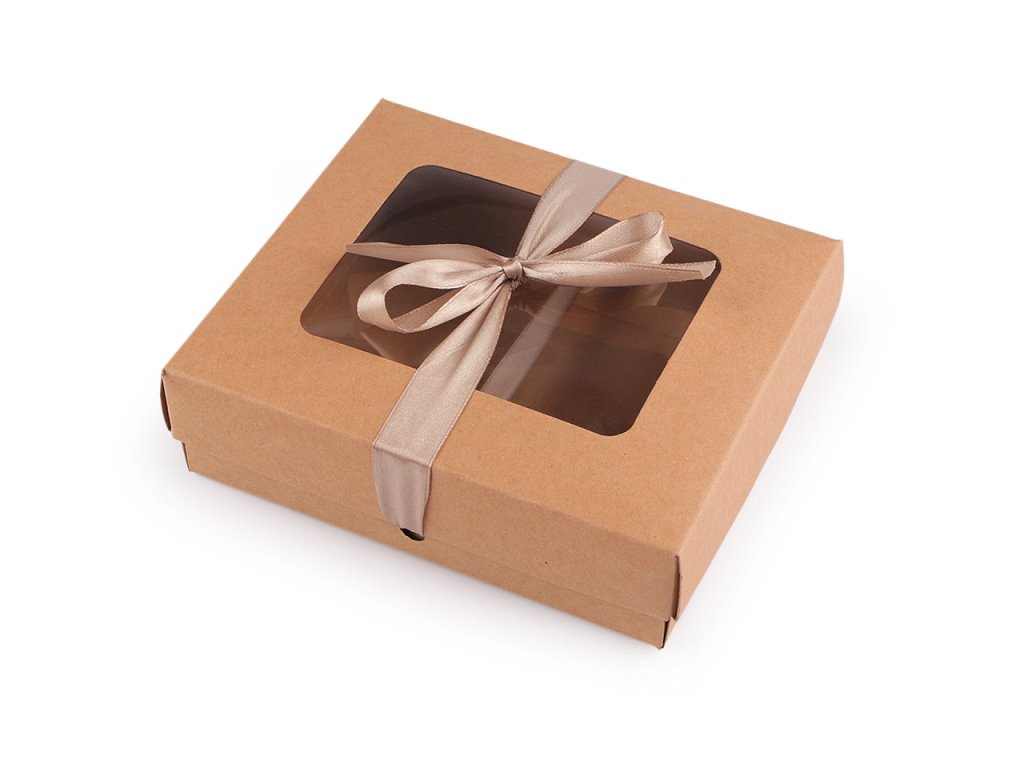 Krabička s průhledem a saténovou stuhou je elegantním řešením dárkového balení. Průhled na vrchní straně přidává krabičce na atraktivitě, protože umožňuje nahlédnout dovnitř. Je ideální pro balení dárků na svatby, narozeniny, svátky nebo i pro firemní akce. Krabici dodáváme v rozloženém stavu (horní víko - 30,5 x 33 cm, spodní část krabice - 37 x 40 cm). Složíte si ji jednoduše podle vyznačených ohýbacích krajů. Rozměr průhledu je 9 x 11,5 cm. Připravili jsme pro vás foto návod na skládání. Ve spodní části krabice jsou otvory, kterými můžete (ale nemusíte), stuhu provléknout.- Rozměry: 14,5 x 17 cm