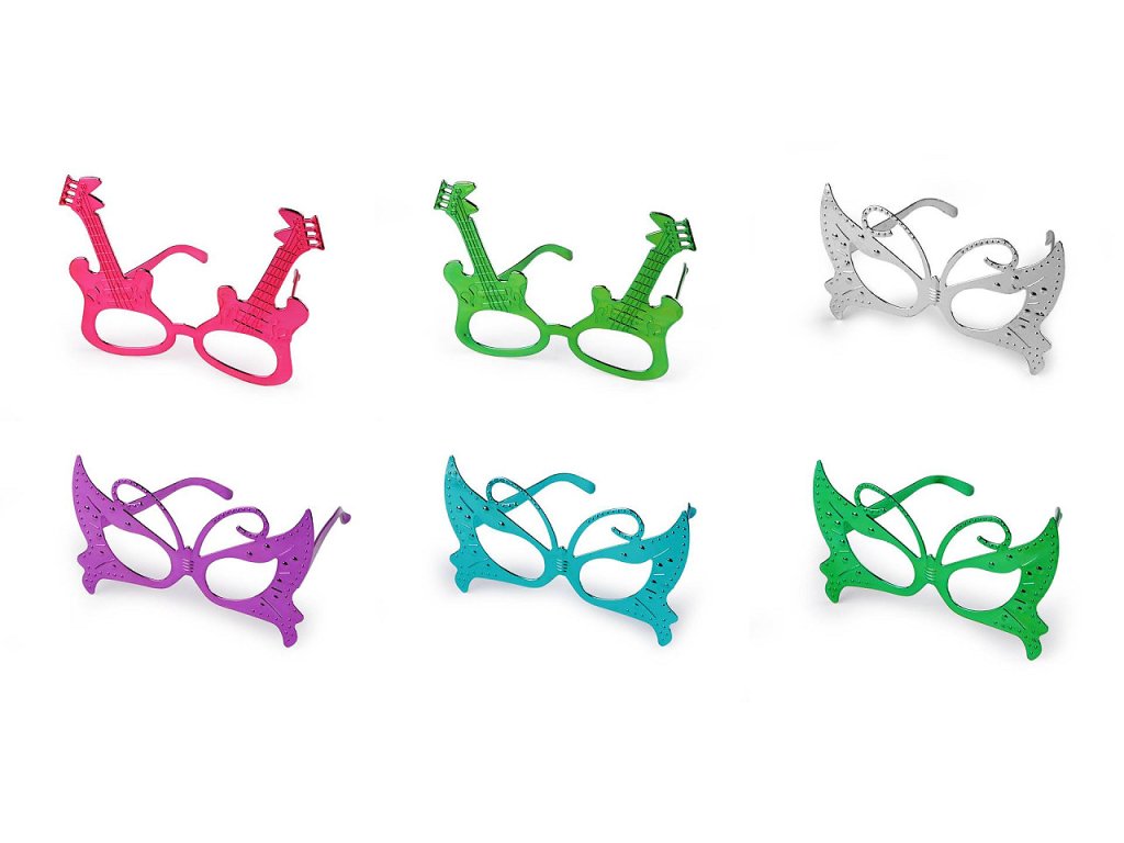 Poutavé a vtipné brýle oživí každou akci, ať už se jedná o narozeninovou oslavu, karneval, diskotéku, rozlučku se svobodou apod. Mají metalický lesk. Výška brýlí s kytarou je 12 cm. Výška brýlí s motýlem je 9 cm.- Šířka: 13,5 cm