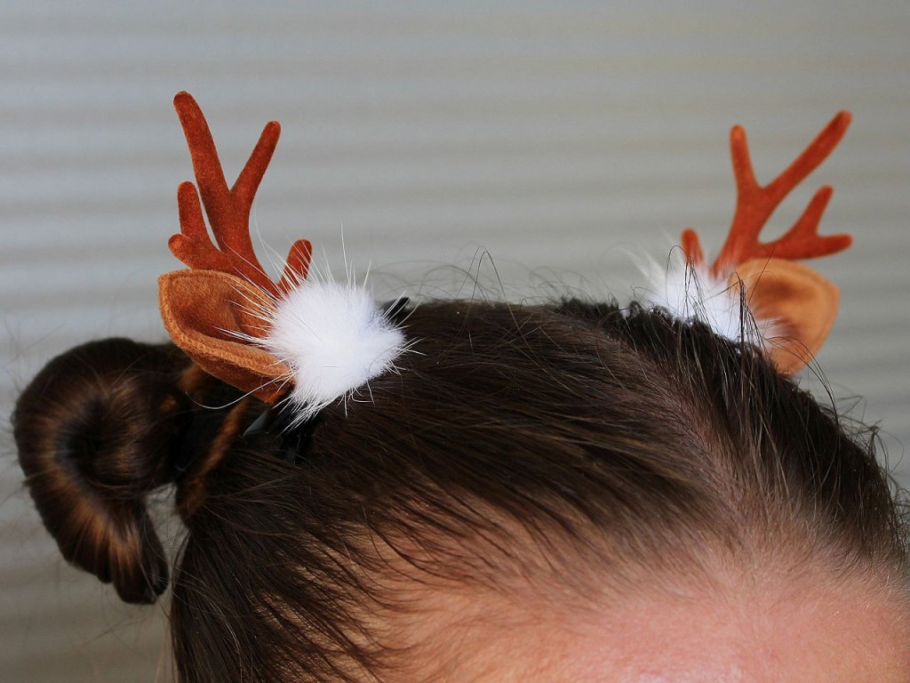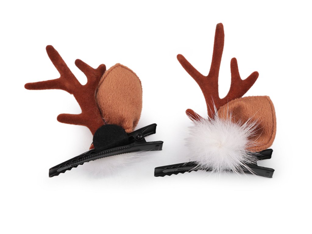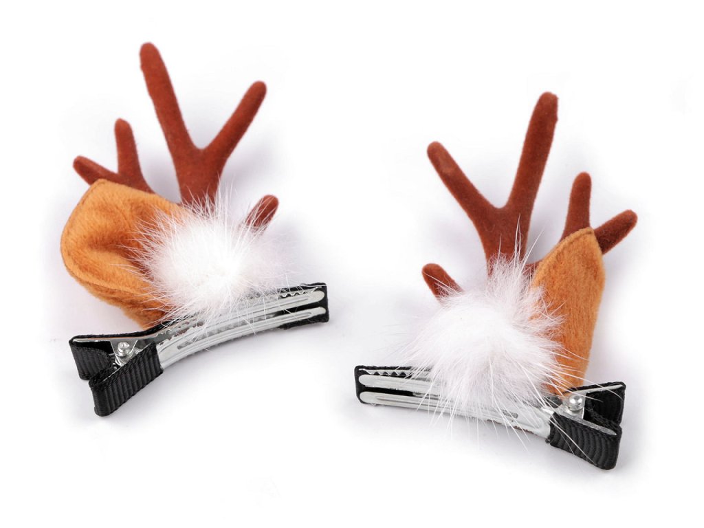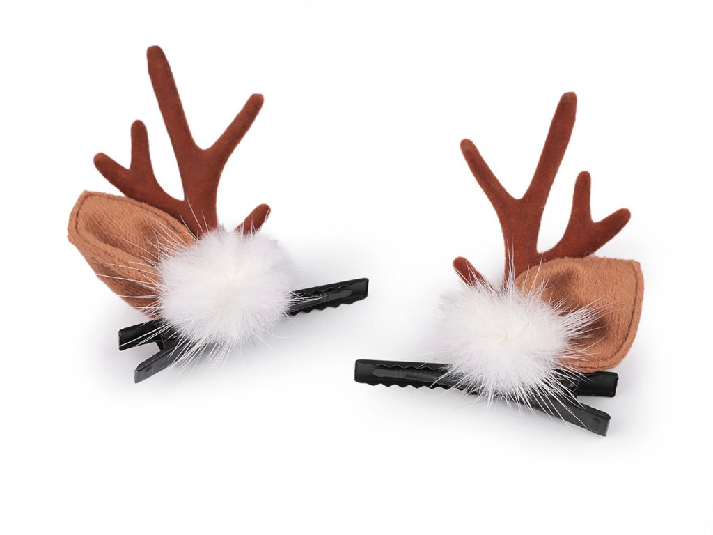 Sponky se sobími parůžky a oušky potěší malé i velké slečny. Malé je ocení k dozdobení roztomilého dětského účesu, pro velké slečny se stanou nepostradatelným doplňkem vánočních večírků. Jsou ozdobené bambulkami z pravé kožešiny, parůžky jsou pevné, potažené imitací semiše. Spony mají zoubky, v účesu perfektně drží. Nemusí se nosit jen ve vlasech, můžete si je ozdobně připnout na tašku, jako zimní dekoraci apod.- Rozměry: 5 x 7,5 cm