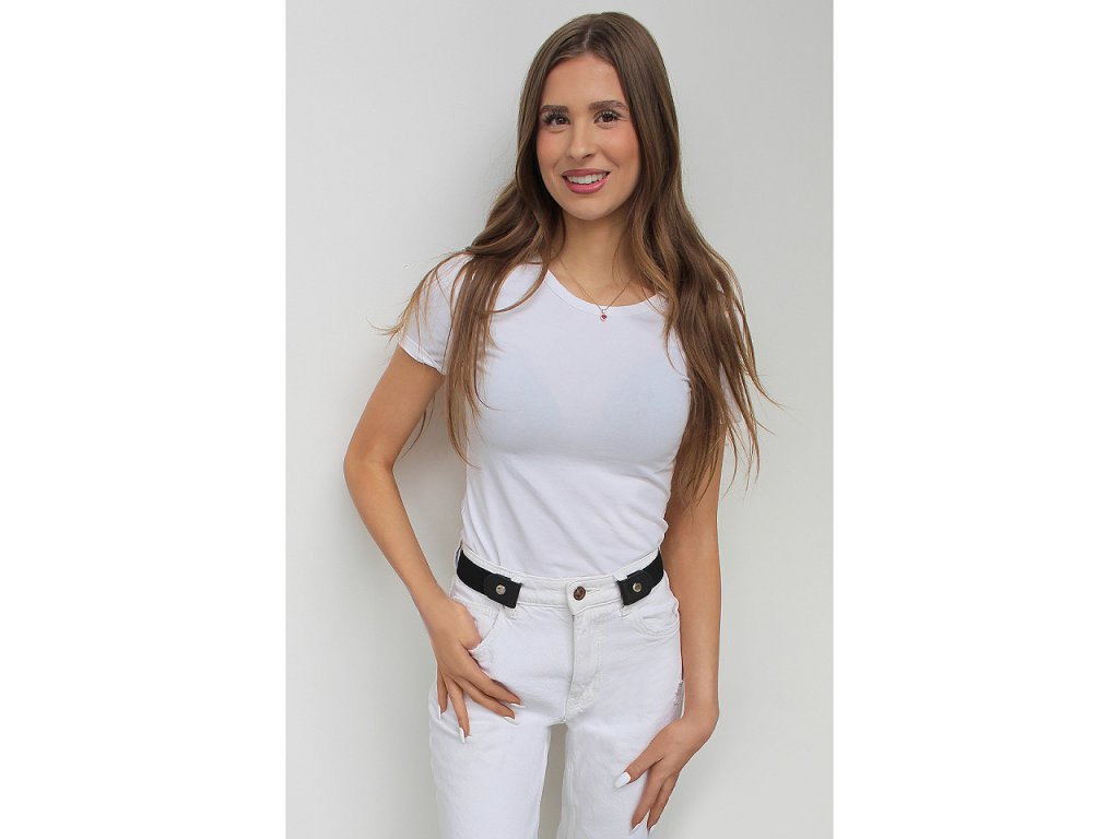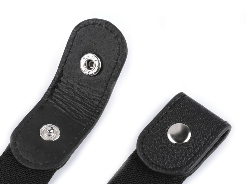 Pružný pásek můžete připnout k poutkům riflí, sukně, kraťasům apod. Zapínání je z eko kůže s kovovým patentem, které se zapíná okolo poutka. Na zadní straně je posunovač, díky kterému si můžete délku pásku individuálně donastavit. Nejmenší délka zapnutého pásku je 47 cm.- Šířka: 3 cm