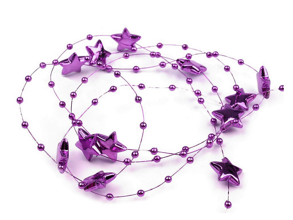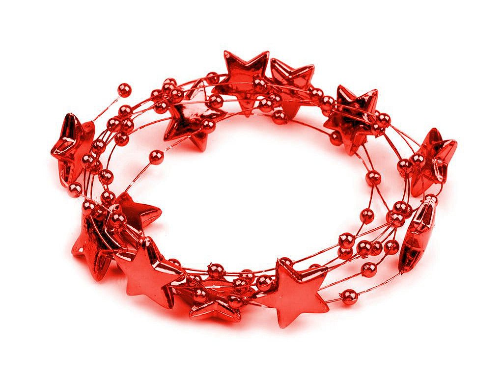 Dekorační perličky s hvězdičkami na silonu využijete jako ozdobný řetěz na věnce, kytice, slavnostní tabule, atd.- Průměr hvězdy: cca 15 mm
