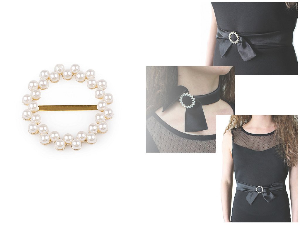 Kulatá perlová spona je velice elegantní. Uprostřed má tyčinku, přes kterou můžete provléct stuhu. Můžete ji využít i na provlečení šátku. Hodí se jako dekorace na svatební polštářky a kytici pro nevěstu. Působivě vynikne jako doplněk na kabelkách, kloboucích a fascinátorech, ale také na oděvech. Můžete ji připevnit na stuhu nebo přišít přímo k látce.- Průměr: 36 mm