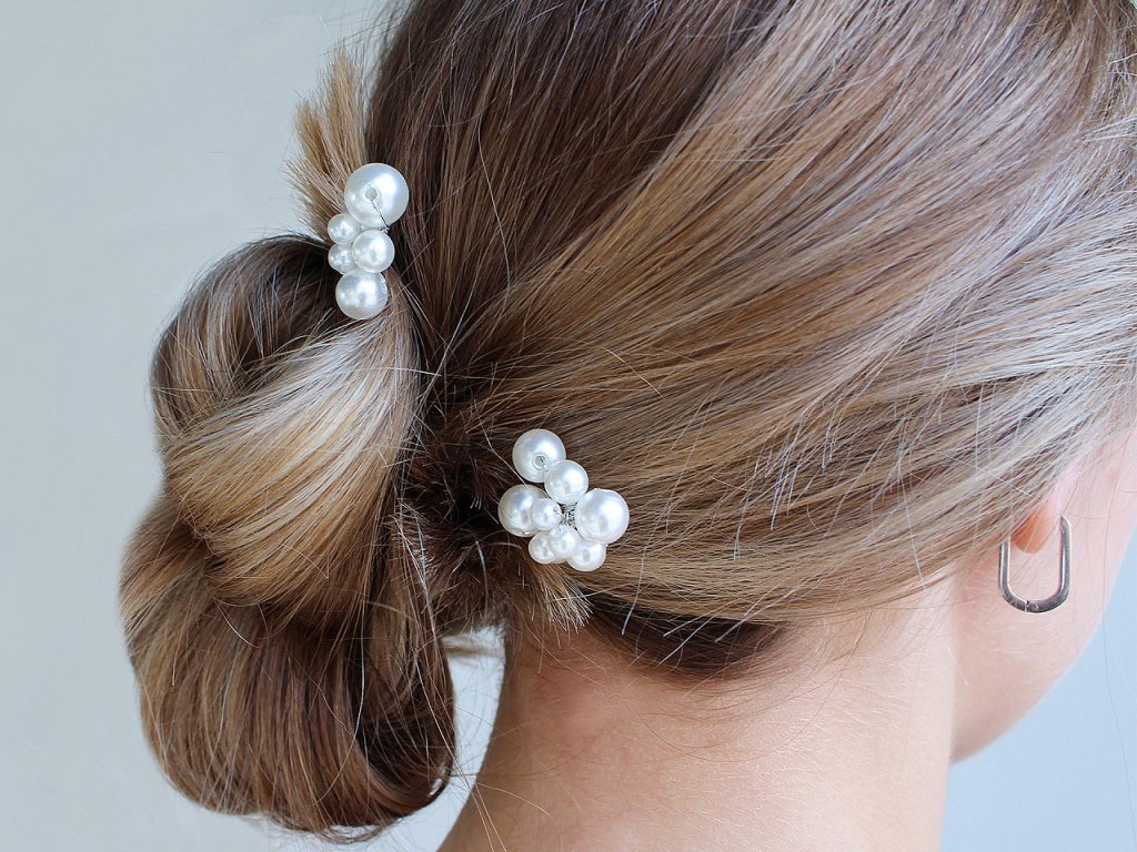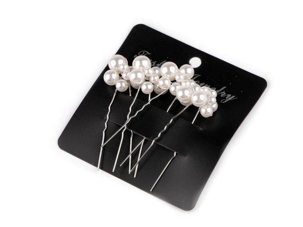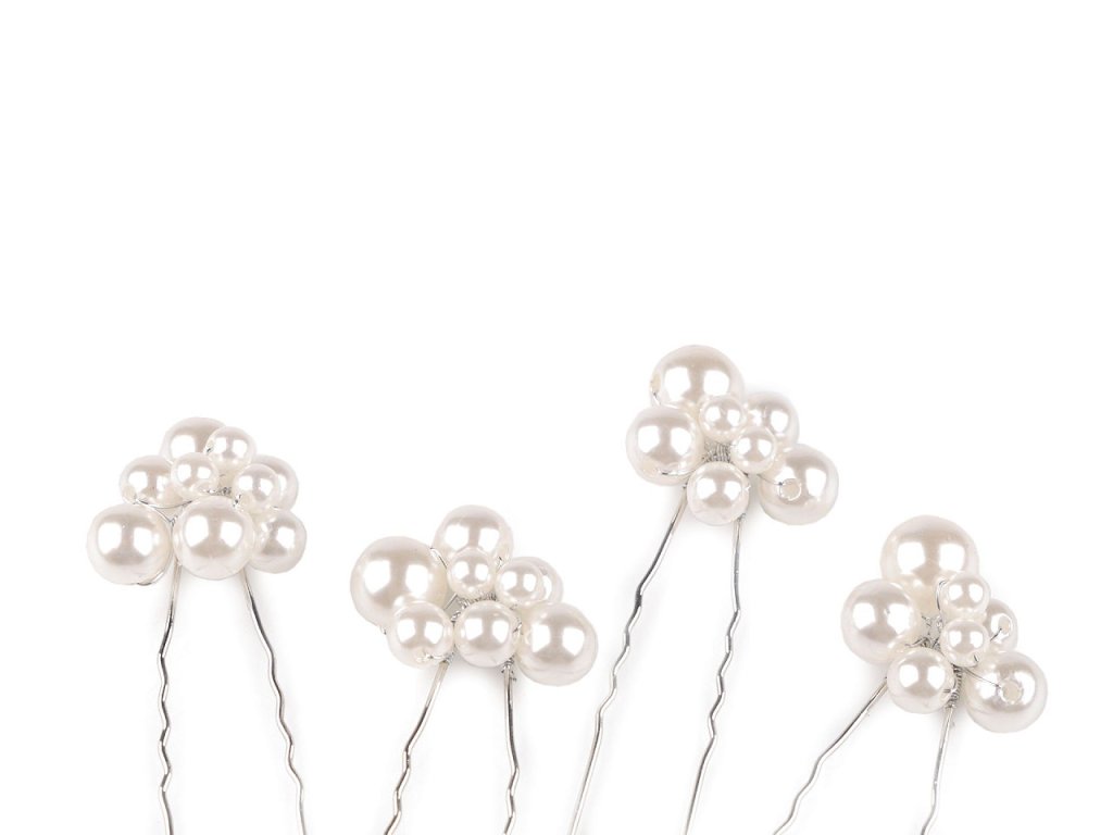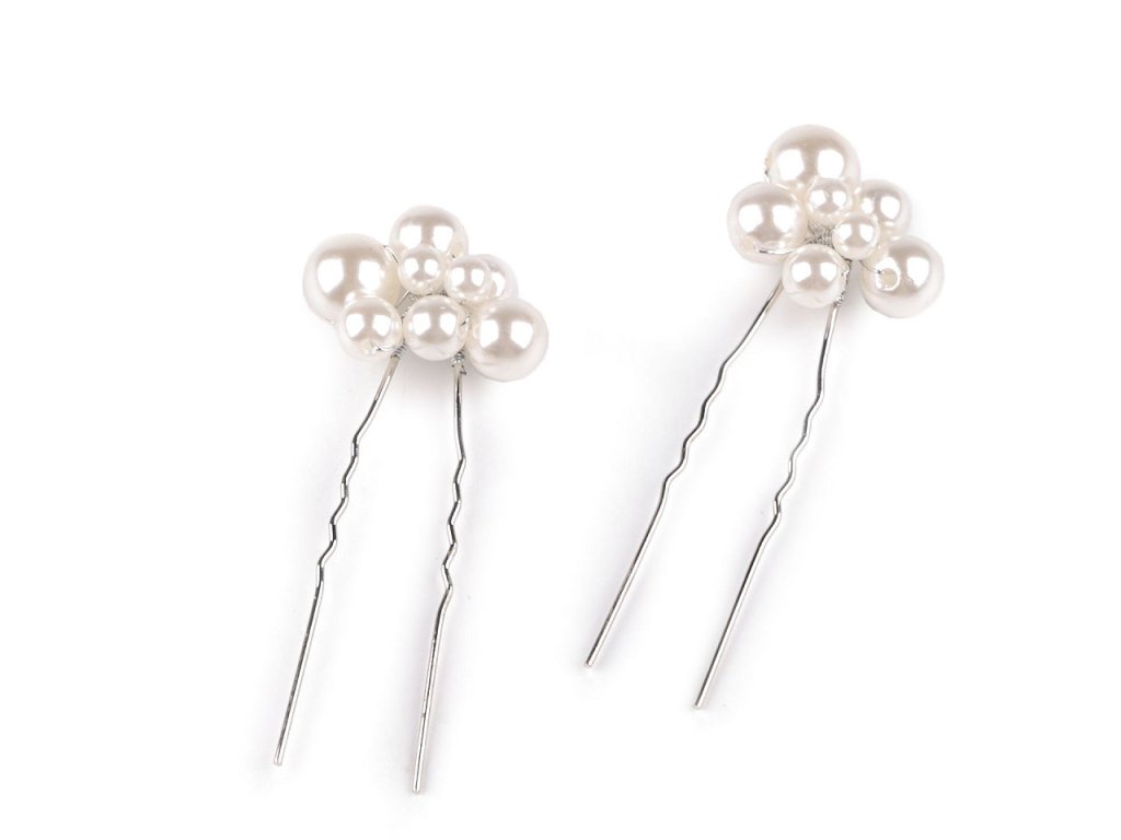 Elegantní perlové vlásenky zpestří váš účes a dodají mu šarm. Perlové korálky se jemně lesknou, jsou pevně přichycené drátkem. Vlásenky jsou z kvalitního, pevného kovu, ozdobí nejen společenské účesy, ale i nevěsty v jejich velký den.- Rozměry ozdoby: 25 x 25 mm