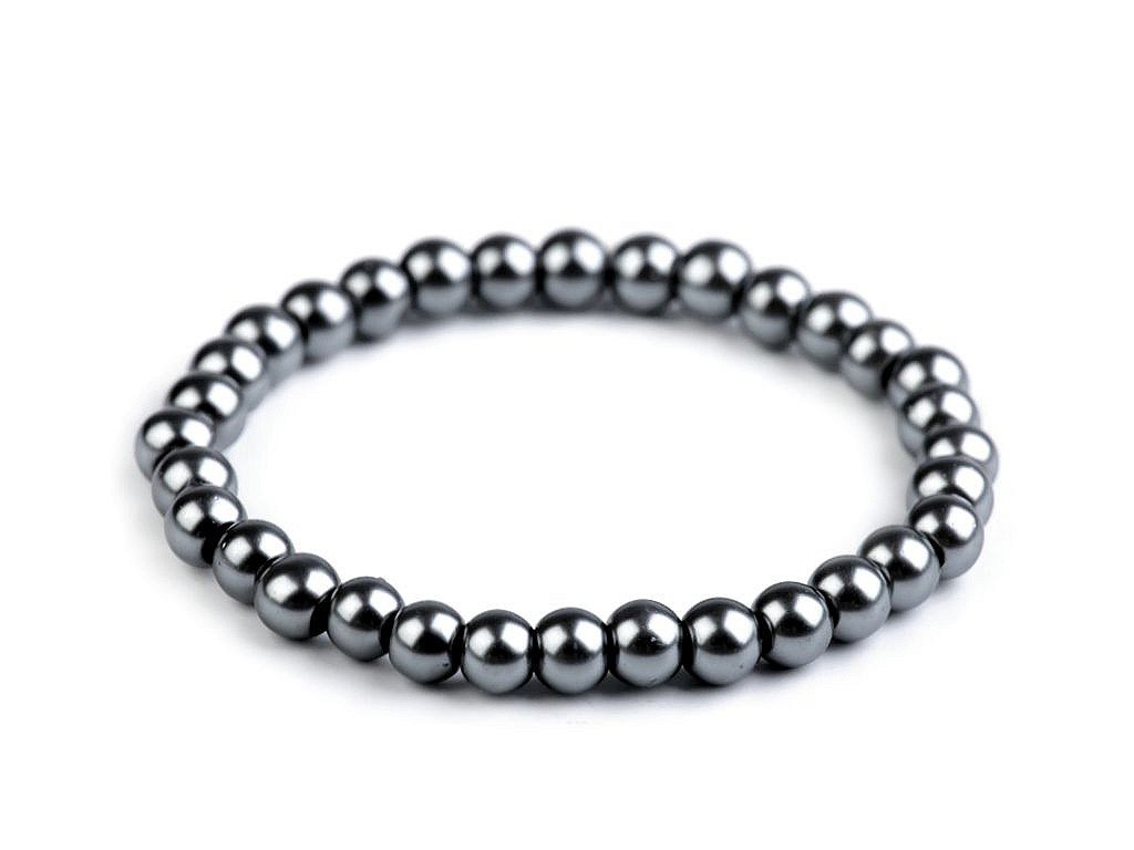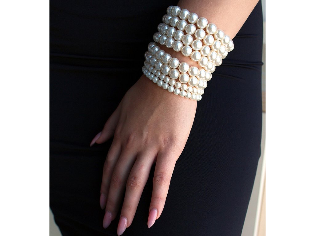 Slušivý náramek z voskovaných perel se efektně leskne. Perly jsou spojené pruženkou, proto se snadno natáhne na ruku. Má univerzální velikost. Náramek je skvělým doplňkem na zápěstí nejen ke společenským šatům, ale je vhodný ke každodennímu nošení do práce k halence nebo kostýmku. Je vkusným dárkem, který potěší ženy všech věkových generací.- Délka: 19 - 20 cm