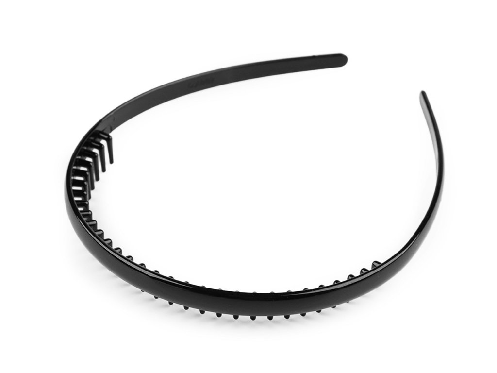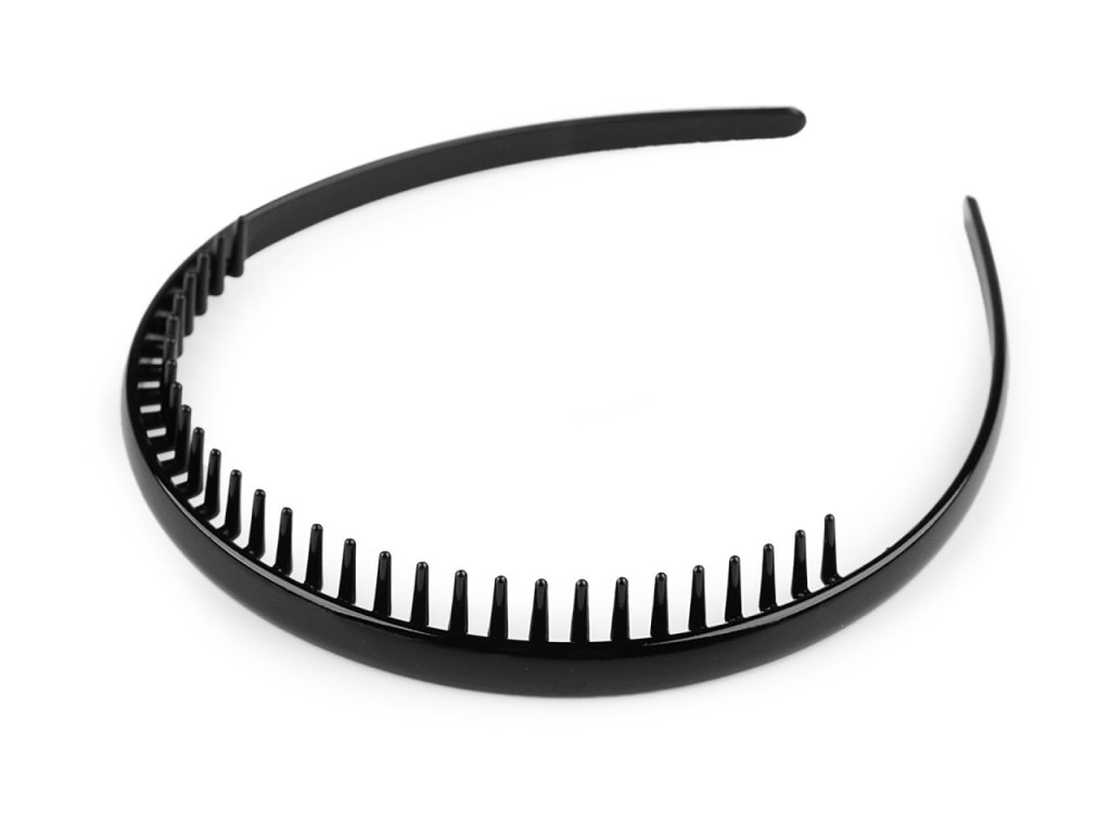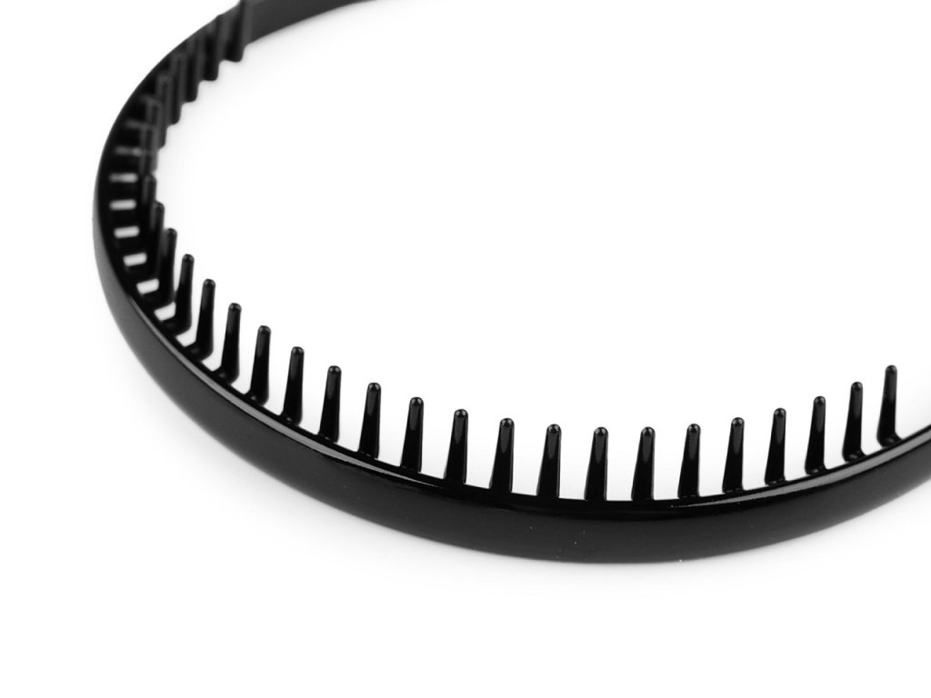 Úzká plastová čelenka s hřebínkem se hodí pro dospělé i děti. Její povrch je lesklý a hladký. Čelenka se velice příjemně nosí, díky hřebínku s dlouhými zuby perfektně drží. Můžete ji využít jako základ k dalšímu dozdobení a vytvořit si tak jedinečný kousek přímo na míru pro vás. Ozdoby můžete nalepovat nejlépe lepidlem na textil nebo tavnou pistolí.- Obvod: 38 cm