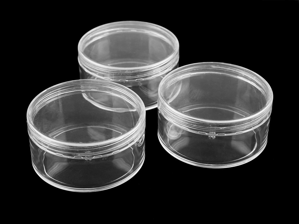 Dózu se šroubovacím víkem využijete na uskladnění malých kreativních potřeb, např. korálků, knoflíků, scrapbookingových potřeb apod. Slečny ji mohou využít na uložení malých sponek, gumiček apod. Je transparentní, dovnitř je perfektně vidět.- Průměr: 6,8 cm