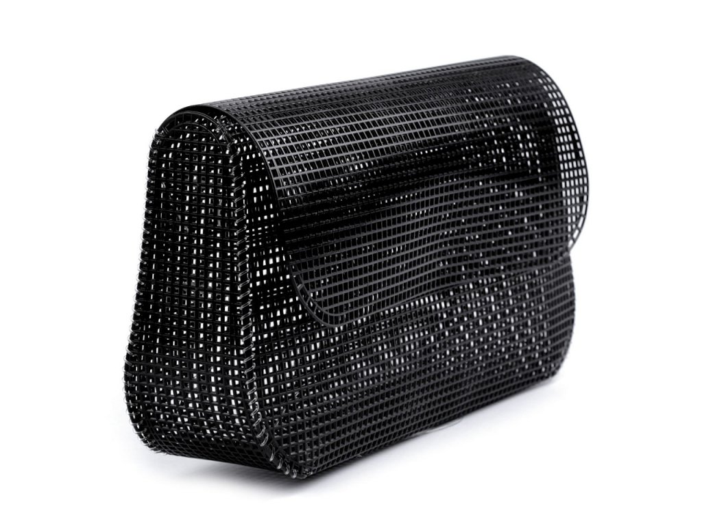 Plastová kanava je polotovar, ze kterého si můžete vyrobit kabelku s klopou o rozměrech cca 27 x 15 x 7 cm. Na výrobu využijte silnější přízi, které je určená k pletení či háčkování. Použít můžete i šňůru či odolnější stuhu (např. rypsovou). Kanavu po celém povrchu vyšijete přízí a sešijete po stranách. Rozměry jednoho čtverečku jsou 2,5 x 2,5 mm.- Rozměry kabelky: 27 x 15 x 7 cm