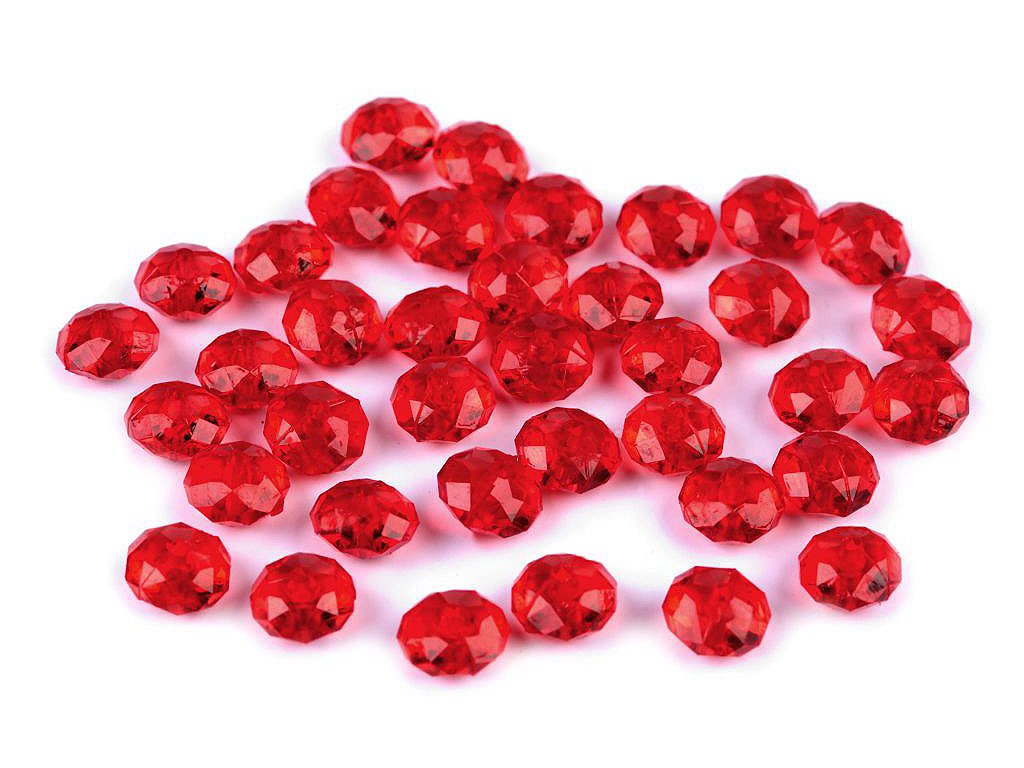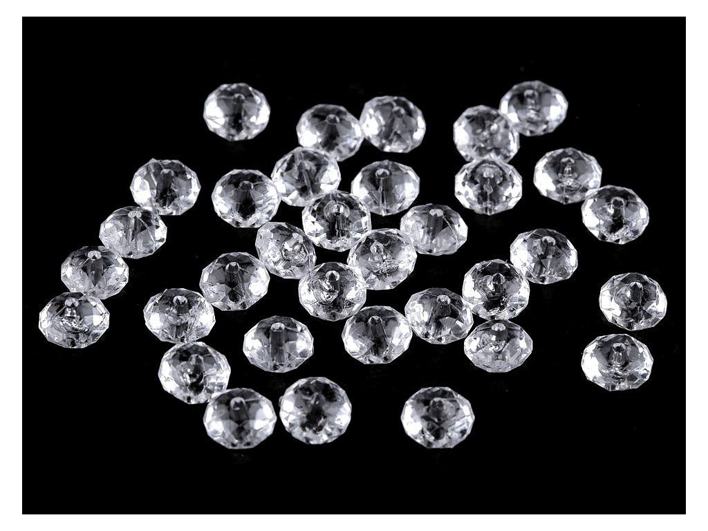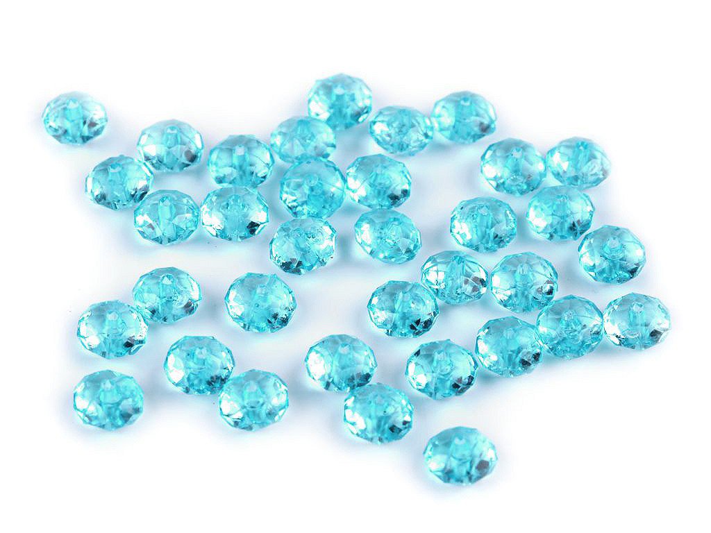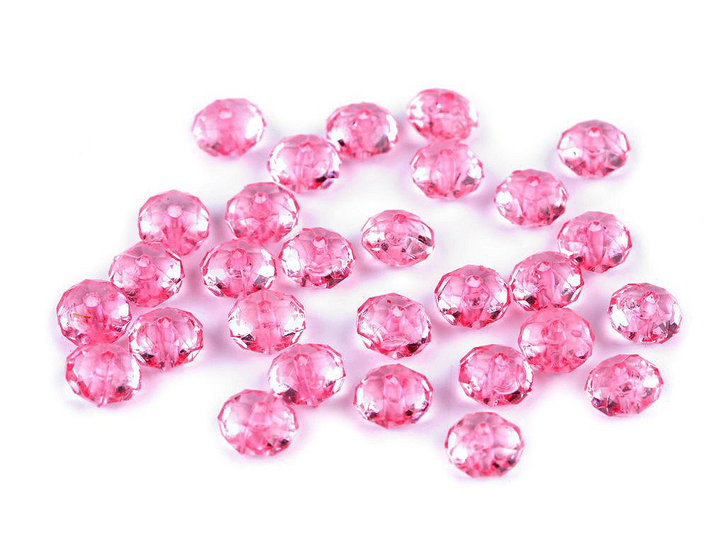 Korálky ve tvaru rondelek vytváří, díky ploškám, světelné odlesky, které výrobkům dodají třpyt a eleganci. Můžete je použít k různým korálkovým technikám, např. na výrobu náhrdelníků a náramků, úchvatné budou v korálkových závěsech. Jejich velikou výhodou je lehká hmotnost. V balení 20 g je cca 120 ks korálků. V balení 500 g je cca 3000 ks korálků. Z důvodu způsobu zpracování plastu mohou být konce a hrany korálků nezačištěné.- Průměr: 8 mm