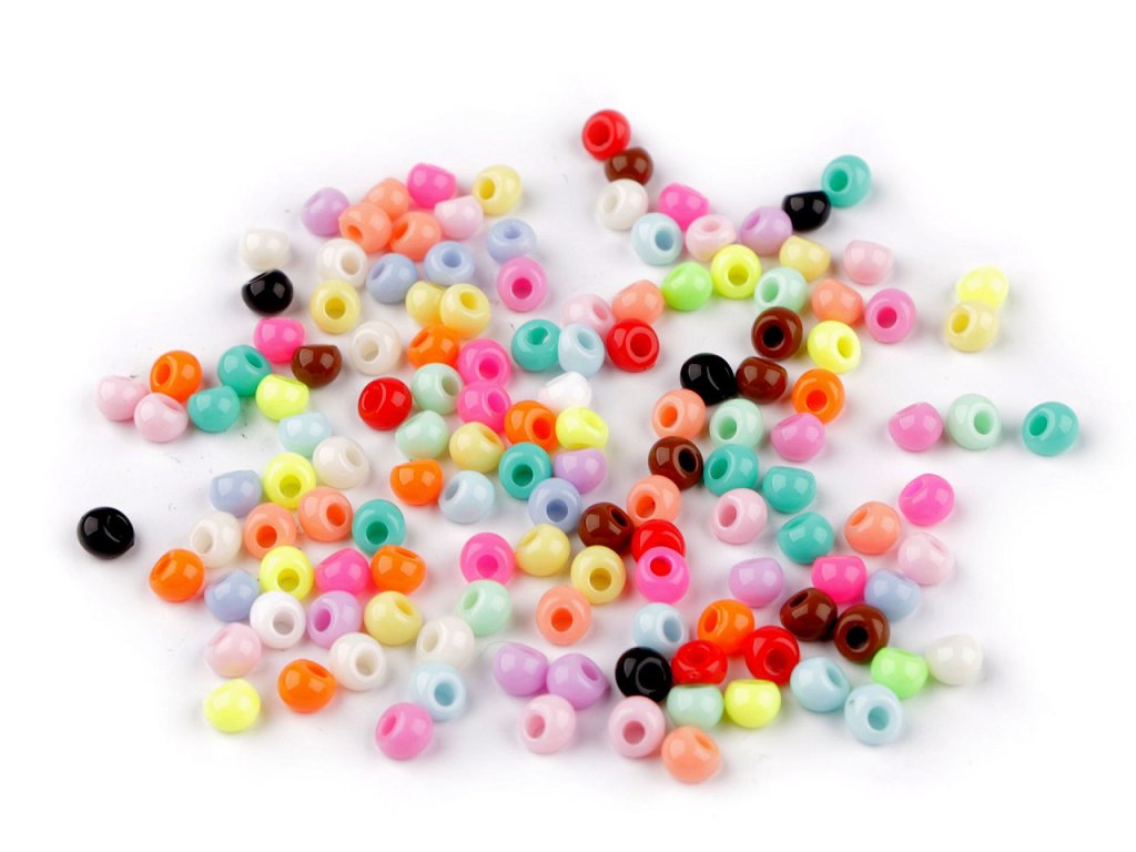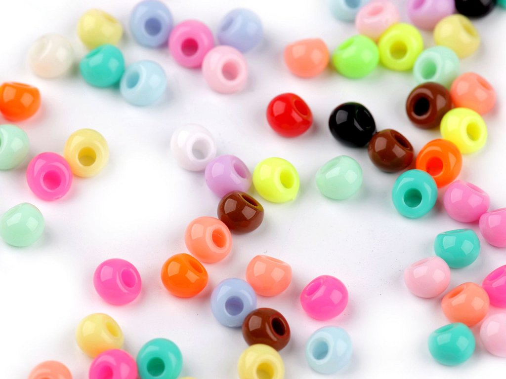 Malé plastové korálky ve tvaru kapky se také nazývají slzičky. Jsou buclaté, mají excentricky umístěný průvlek, syté barvy a jemný lesk. Jsou velice kvalitní, všude hladké, nemají žádné otřepení nebo viditelné švy. Využijete je na výrobu bižuterie a zdobení oděvů, tašek či dekorací do bytu. V balení 10 g je cca 190 ks korálků.- Šířka: 4,7 mm