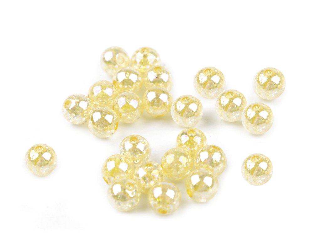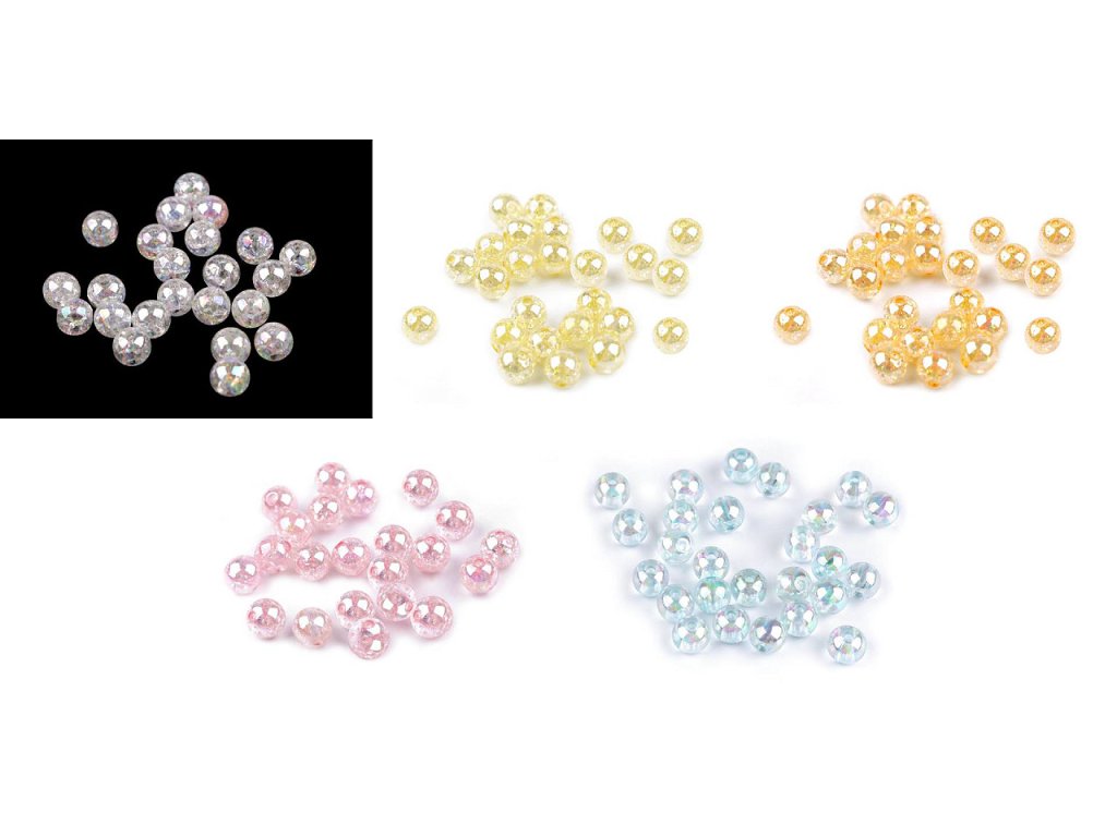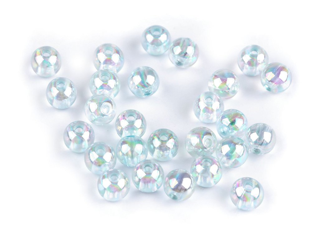 Plastové korálky s AB efektem nadchnou děti i dospělé. Jsou doslova magické, protože jsou transparentní, ale jejich povrch má vysoký lesk s AB efektem. Našim fotografům se fotografie velmi povedly, ale věřte, že ve skutečnosti jsou korálky ještě zajímavější. Korálky můžete použít na výrobu náhrdelníků, náramků, přívěsků ke klíčům apod. Balení 10 g obsahuje cca 32 ks korálků.- Průměr: 8 mm
