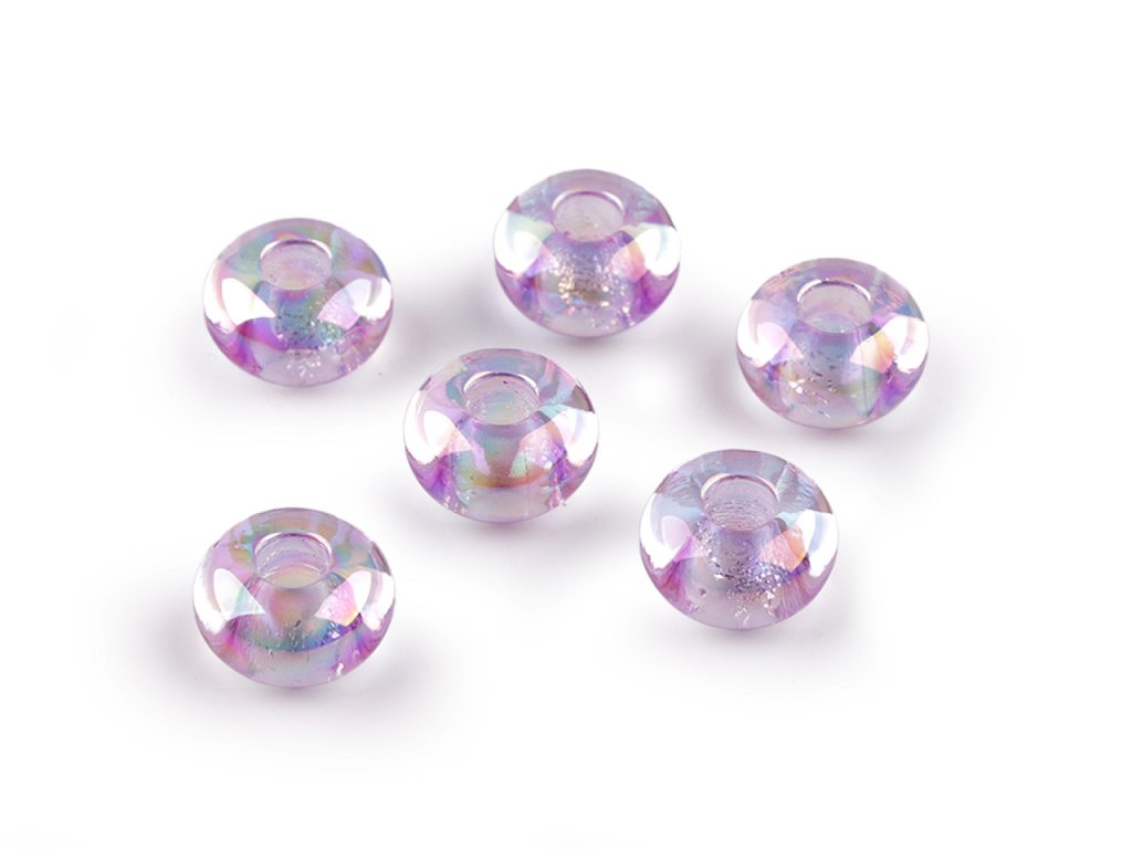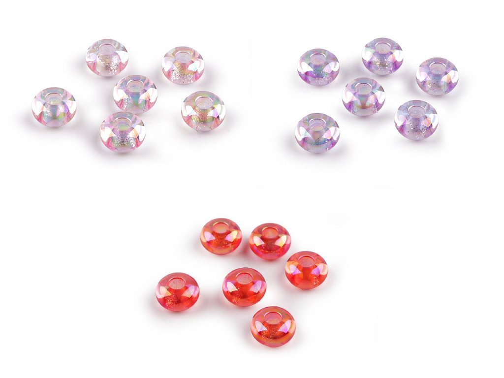 Plastové korálky s velkým průvlekem Ø13 mm s AB efektem
