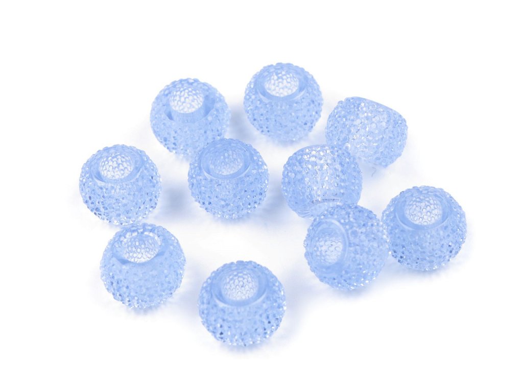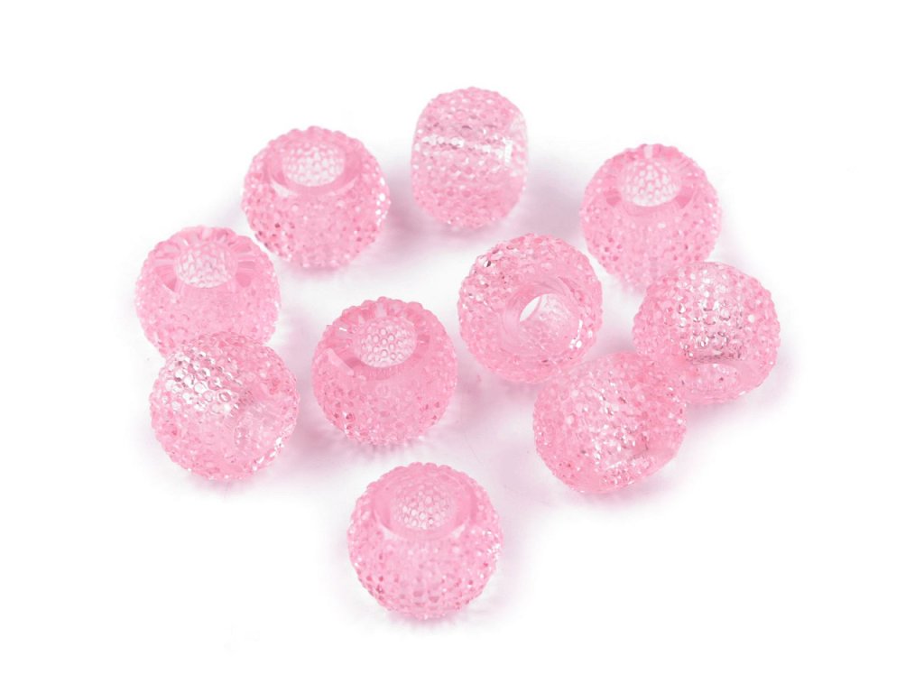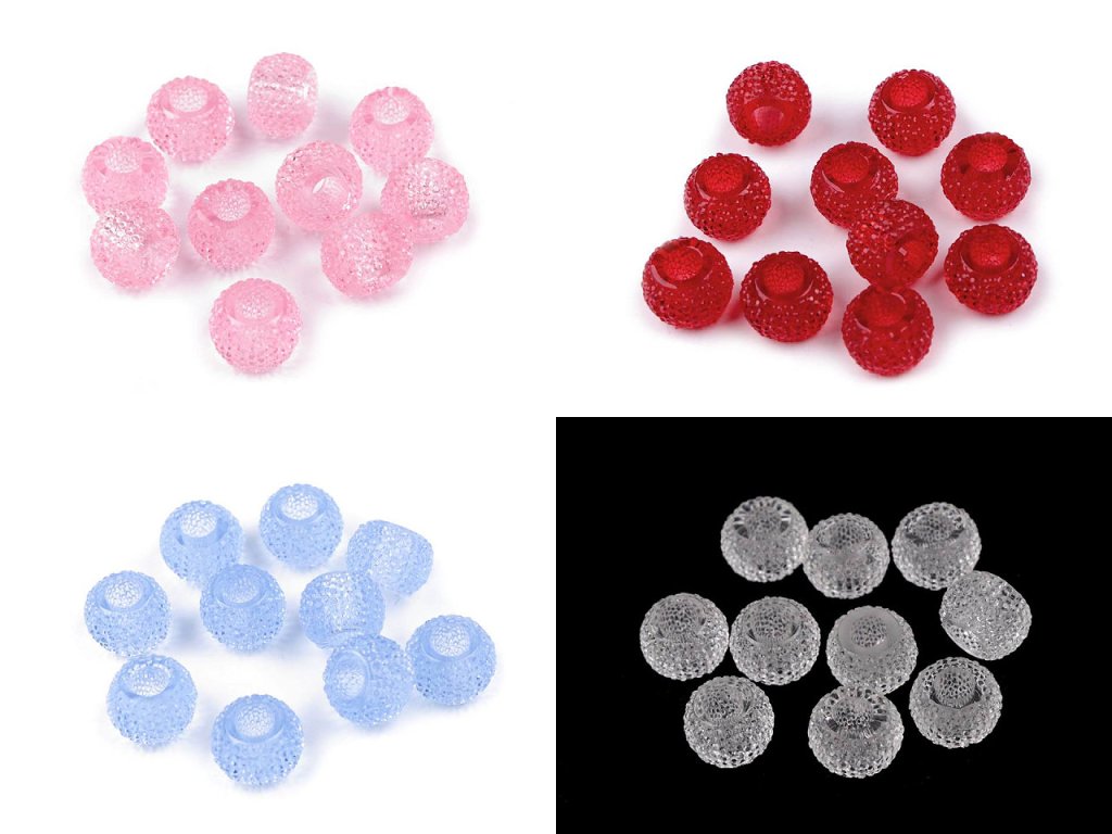 Plastové korálky s velkým průvlekem mají díky drobných plošek výrazný lesk. Jsou velice kvalitní, nemají žádné otřepení nebo viditelné švy. Jejich velikou výhodou je lehkost použitého materiálu. Korálky využijete nejen k výrobě bižuterie, ale i ke zdobení oděvů, tašek nebo plavek. Díky velkému průvleku se hodí i na výrobu macrame dekorací. Korálky jsou vhodné pouze pro šetrné ruční praní.- Průměr: 12 mm