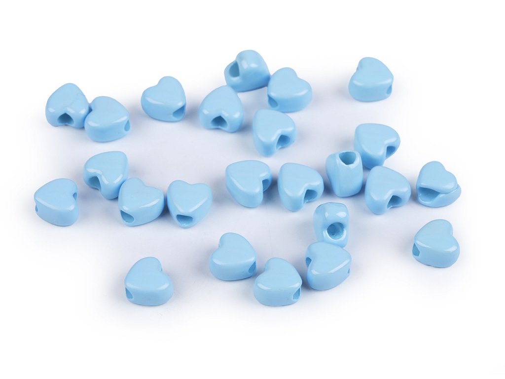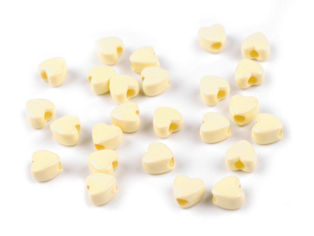 Plastové korálky ve tvaru srdce nadchnou děti i dospělé. Jsou lesklé, mají syté barvy. Jsou velice kvalitní, všude hladké, nemají žádné otřepení nebo viditelné švy. Můžete je navlékat na silon, šňůrky nebo jiný návlekový materiál. Korálky můžete použít na výrobu náramků, náhrdelníků, hodí se i na výrobu lapačů snů. Balení 5 g obsahuje cca 20 - 26 ks korálků.- Průměr: 8 mm
