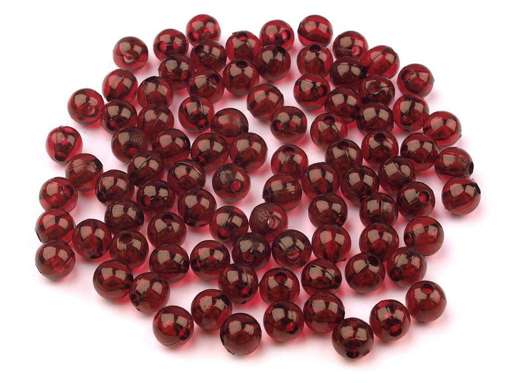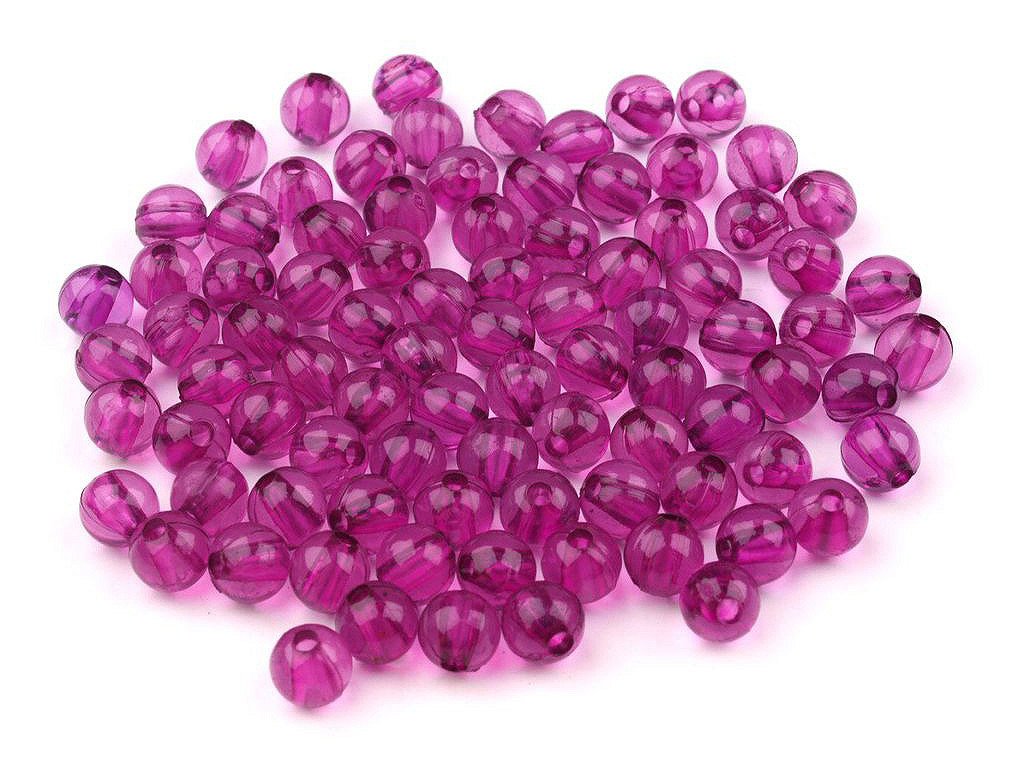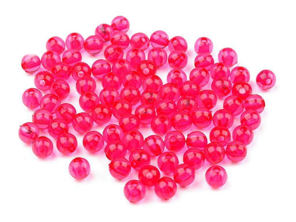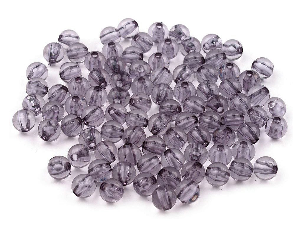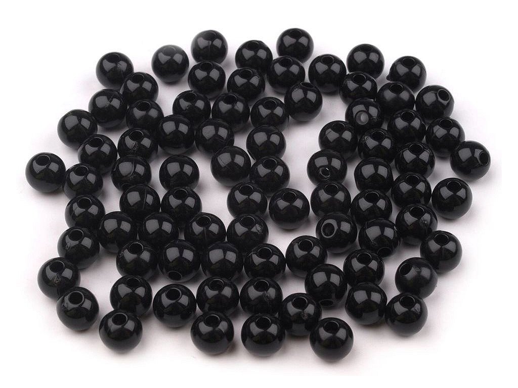 Transparentní plastové korálky se líbí dětem i dospělým. Dají se použít na výrobu náhrdelníků, náramků, přívěsků ke klíčům apod. V balení 20 g je cca 150 ks korálků. Korálky černé barvy jsou neprůhledné. Časem mohou korálky pouštět barvu.- Průměr: 6 mm