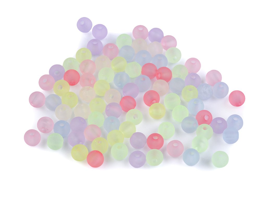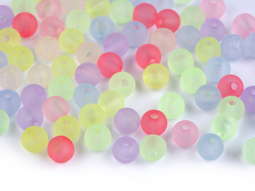 Transparentní plastové korálky s matujícím frosted povrchem se líbí dětem i dospělým. Dají se použít na výrobu náhrdelníků, náramků, přívěsků ke klíčům apod. Korálky jsou kvalitní, mají hladký povrch, což zaručuje pohodlné nošení a příjemnou práci během tvoření. Ať už jste začátečník nebo zkušený tvůrce, tyto korálky vám nabídnou nespočet možností pro realizaci vašich kreativních nápadů. V balení 10 g je cca 90 ks korálků.- Průměr: 6 mm