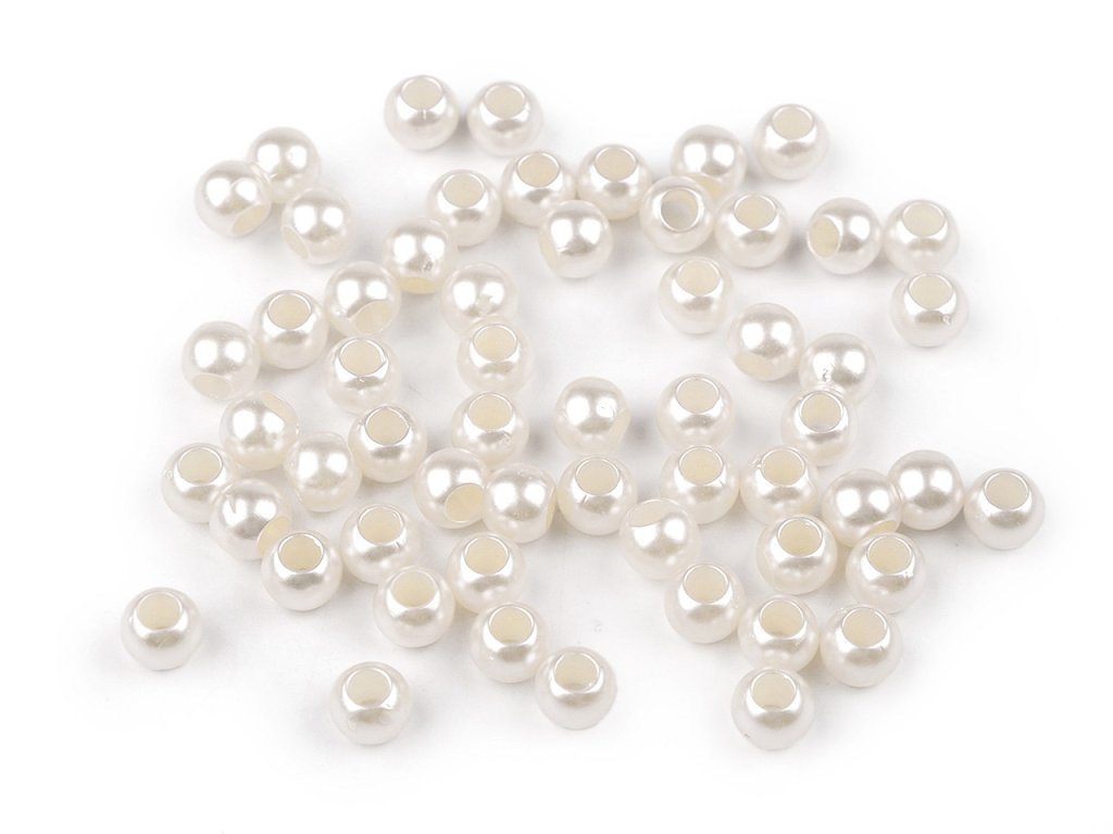 Plastové korálky s velkým průvlekem mají efektní povrch s perleťovým leskem. Využijete je do krátkých i dlouhých náhrdelníků nebo náramků. Jejich velikou výhodou je lehký materiál a větší průvlek. Jako návlekový materiál jsou vhodné šperkové šňůrky. Korálky můžete navlékat na větší množství tenkých šňůrek, které se mezi sebou různě uzlují a svazují a tvoří tak zajímavý celek. Korálky využijete nejen k výrobě bižuterie, ale i ke zdobení oděvů, tašek nebo plavek. Korálky jsou vhodné pouze pro šetrné ruční praní. Balení 20 g obsahuje cca 110 ks korálků.- Průměr: 8 mm