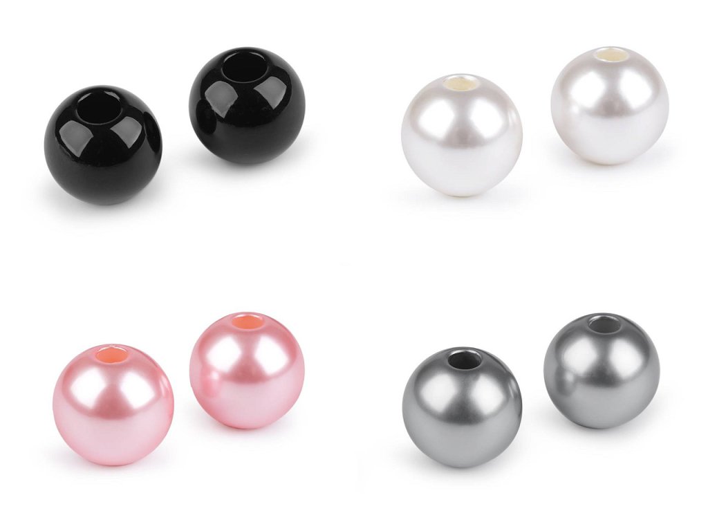 Velké perlové korálky dokáží vyvolat dojem luxusu. Může za to jejich jemný a přitom zářivý lesk. Jejich efektní plastová imitace má stejný lesk na jaký jste zvyklí u skleněných voskovaných perlí. Jejich výhodou je lehká hmotnost, nemusíte se bát použít je do výrazných náhrdelníků. Stačí je jednoduše navléct a doplnit jinými druhy korálků dle vašeho vkusu. Díky velkému průvleku se hodí i na navléknutí na šňůry a provázky, můžete je použít například do lapačů snů, na různé dekorace, k ozdobení uch kabelek, tašek apod. Dají se využít i jako hlavičky na tvorbů postaviček a zvířátek.- Průměr: 30 mm