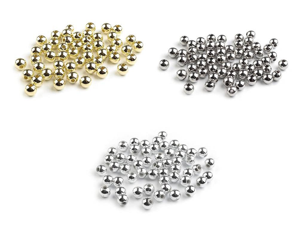 Výrazné plastové korálky ve tvaru kuličky s metalickou, vysoce lesklou úpravou na povrchu. Věrně imitují korálky kovové, oproti kterým jsou lehčí, takže vaše výrobky nezatíží a nebudou studit jako kov. Vašim výrobkům dodají elegantní vzhled. V sáčku po 20 g je cca 200 ks.- Průměr: 6 mm