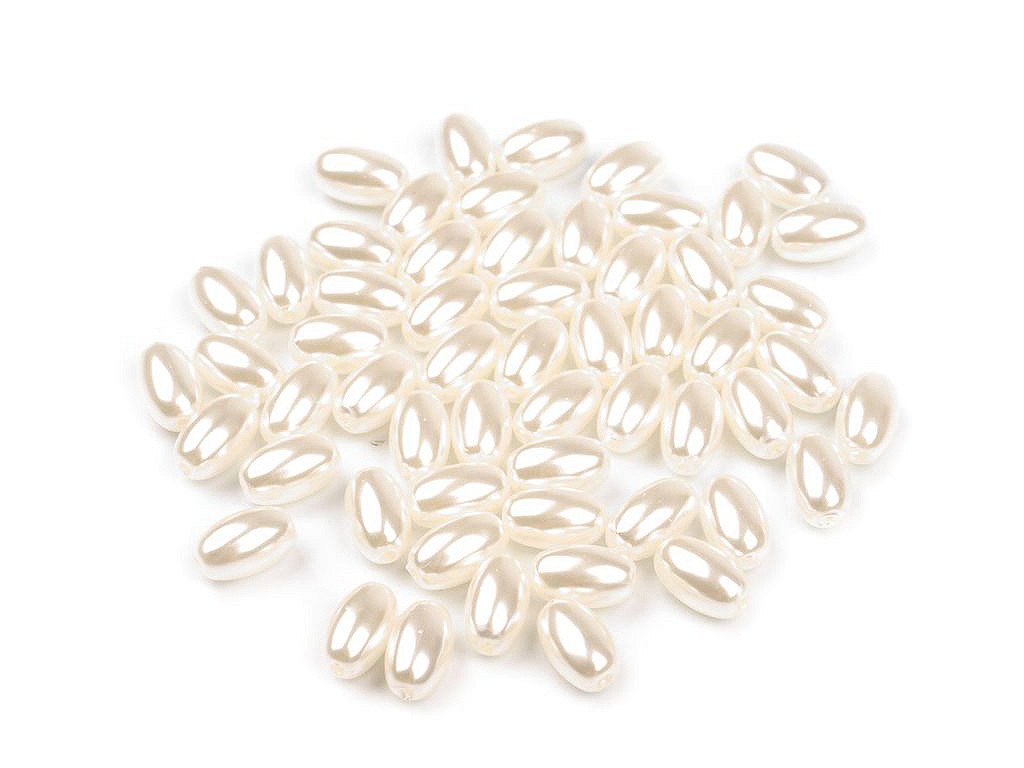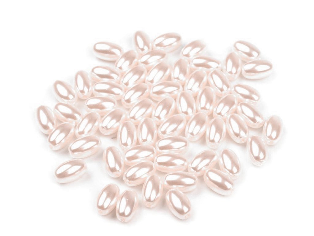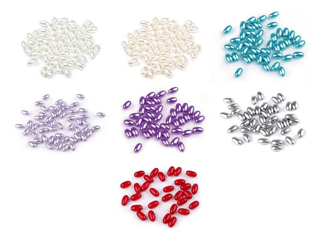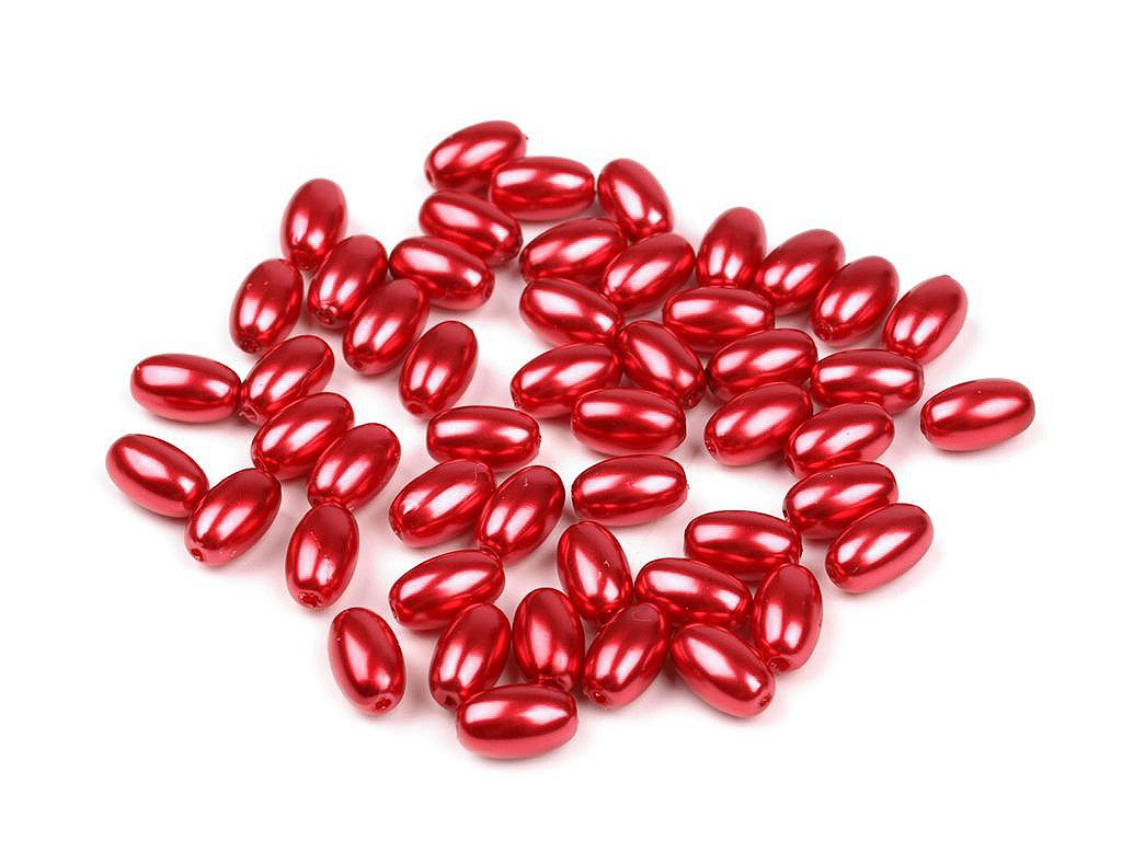 Perly jsou milovány ženami z celého světa. Dokáží vyvolat dojem luxusu. Může za to jejich jemný a přitom zářivý lesk. Nabízíme vám je v efektní plastové imitaci, ve tvaru olivy. Mají stejný lesk na jaký jste byli zvyklí jen u skleněných voskovaných perlí. Navíc je jejich výhodou nízká hmotnost, nemusíte se bát použít je do dlouhých náhrdelníků. Vašim šperkům dodají neopakovatelnou noblesu. Stačí je jednoduše navléct a doplnit kovovými komponenty či jinými druhy korálků dle vašeho vkusu a získáte jedinečný elegantní šperk. Inspirace k použití viz foto. Jako návlekový materiál jsou vhodná lanka. Zkuste si vyrobit ten nejjednodušší náramek - navlečte korálky na pruženku, zauzlujte a hotovo. Nový elegantní šperk je hotový doslova za pár minut. V balení 10 g je cca 50 korálků, v balení 100 g je cca 500 korálků, v balení 500 g je cca 2500 korálků. Červené korálky č. F40 nemají perlový lesk.- Průměr: 6 mm