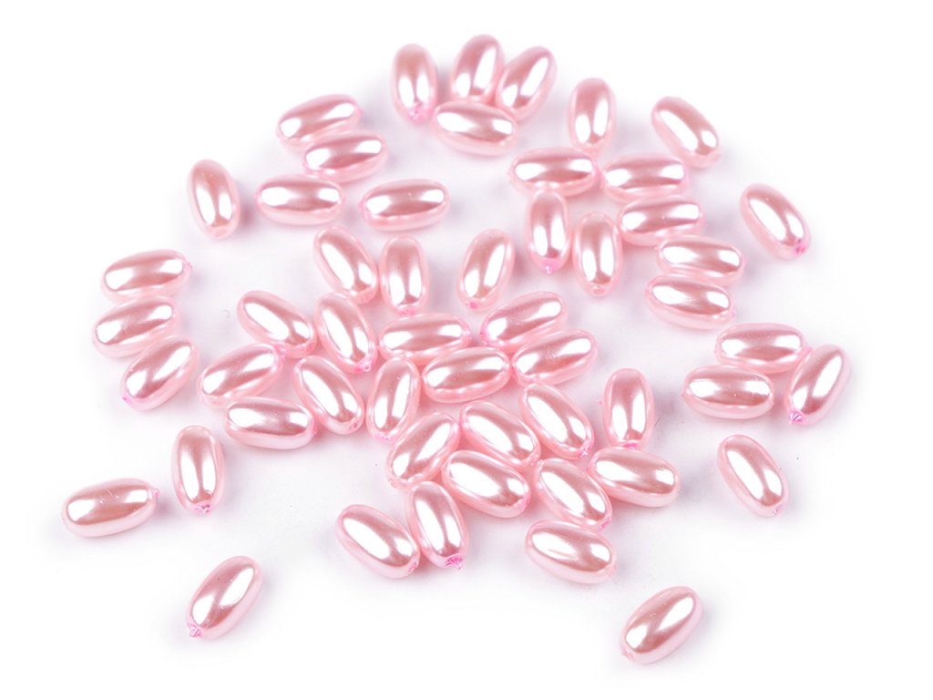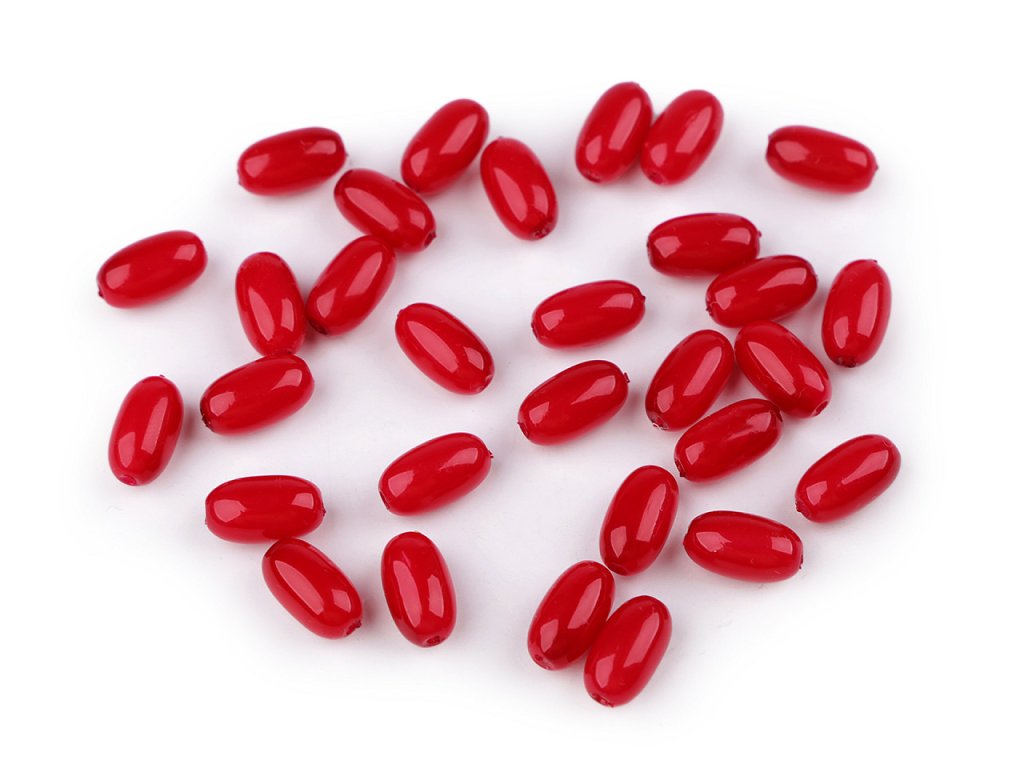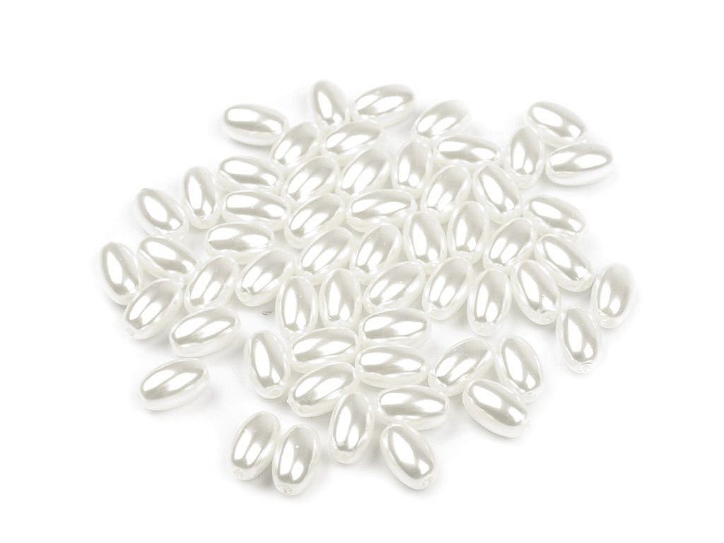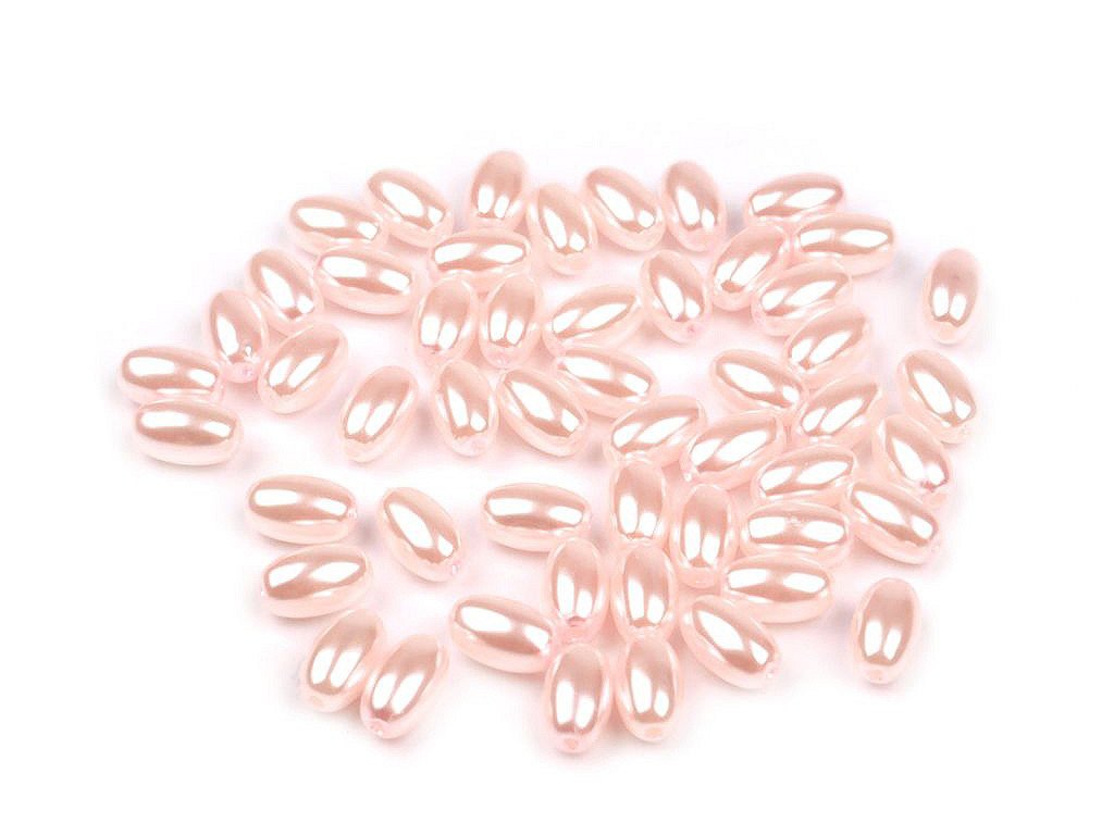 Perly jsou milovány ženami z celého světa. Dokáží vyvolat dojem luxusu. Může za to jejich jemný a přitom zářivý lesk. Nabízíme vám je v efektní plastové imitaci, ve tvaru olivy. Mají stejný lesk na jaký jste byli zvyklí jen u skleněných voskovaných perlí. Navíc je jejich výhodou nízká hmotnost, nemusíte se bát použít je do dlouhých náhrdelníků. Vašim šperkům dodají neopakovatelnou noblesu. Stačí je jednoduše navléct a doplnit kovovými komponenty či jinými druhy korálků dle vašeho vkusu a získáte jedinečný elegantní šperk. Inspirace k použití viz foto. Jako návlekový materiál jsou vhodná lanka. Zkuste si vyrobit ten nejjednodušší náramek - navlečte korálky na pruženku, zauzlujte a hotovo. Nový elegantní šperk je hotový doslova za pár minut. V balení 10 g je cca 50 korálků, v balení 100 g je cca 500 korálků, v balení 500 g je cca 2500 korálků. Červené korálky č. F40 nemají perlový lesk.- Průměr: 6 mm