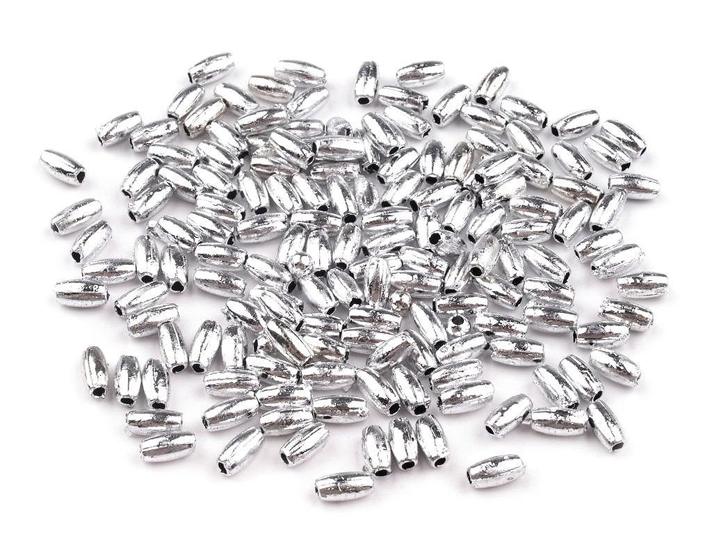 Velmi užívaná velikost lesklých korálků s efektem voskovaných perlí. Oválky jsou plastové, tudíž velmi lehké. Používají se jak na šité šperky, tak pro odlehčení při výrobě náhrdelníku v kombinaci s většími a těžšími korálky. Průvlek 1 mm. V balení 5g je cca 146ks korálků.- Rozměry: 3 x 6 mm