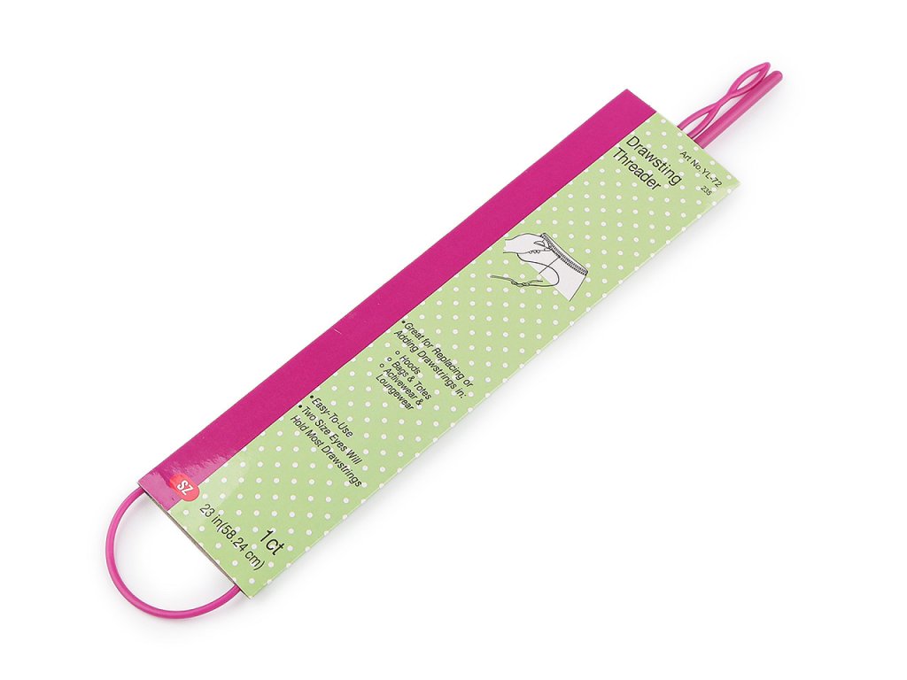 Plastový navlékač je šikovný pomocník, který vám usnadní práci při navlékání gumy a provlékání provázků či stuh do kapucí, tepláků, tašek, pytlíků, vaků, textilních čelenek apod. Najdete na něm dvě velikosti oček - vnitřní rozměry 1,6 x 10 mm, 2,3 x 16 mm. Šňůru či gumu můžete provléct jedním z oček nebo oběma, aby držela pevně.- Délka: 58 cm