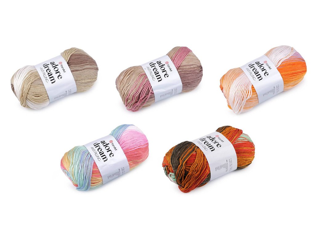 S pletací přízí Adore Dream vytvoříte zajímavé výrobky. Melírovaný efekt dokáže udělat s pletením či háčkováním divy. Má také antipillingovou úpravu, která zabraňuje žmolkování. Je vhodná na pletení či háčkování lehkých letních svetrů, čepic, kloboučků, ponožek apod. Velikost jehlic: 4 Velikost háčku: 4- Hmotnost: 100 g