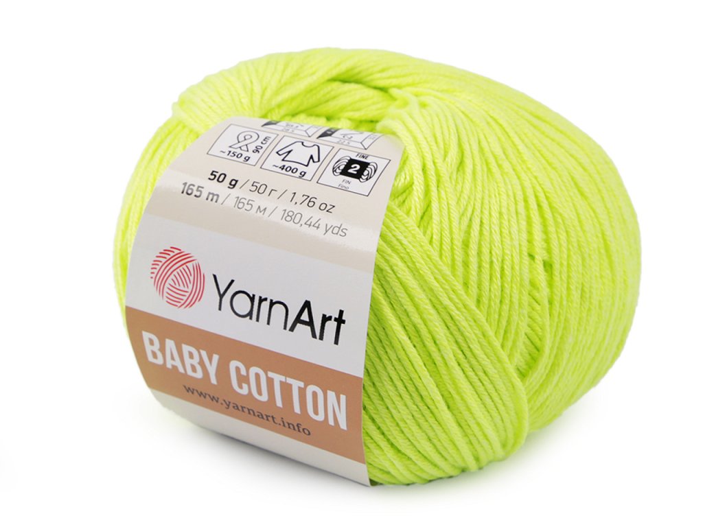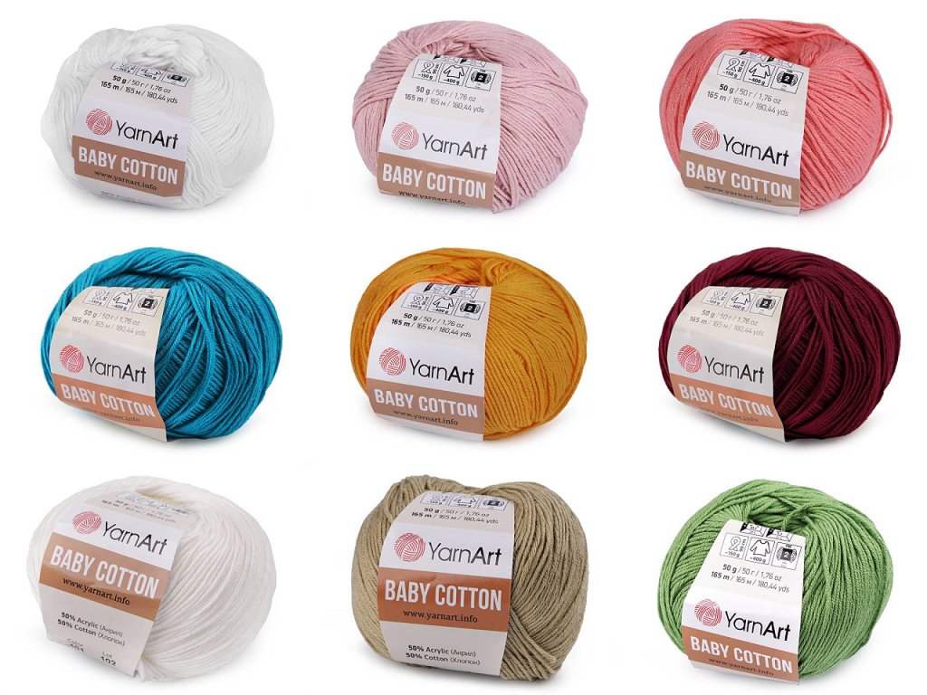 Pletací příze Baby Cotton je vhodná na pletení i háčkování čepic, čelenek, šálů, svetříků apod., ale také postaviček a zvířátek. Velikost jehlic: 3 Velikost háčku: 3- Hmotnost: 50 g