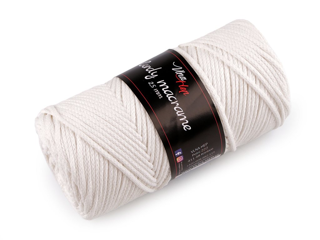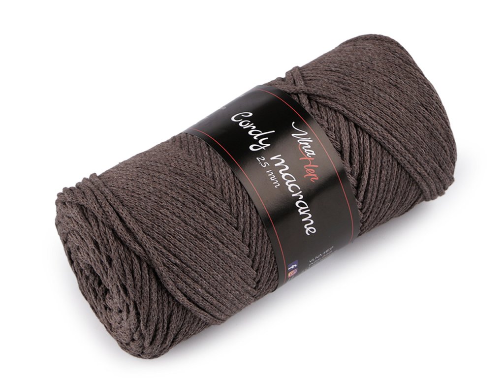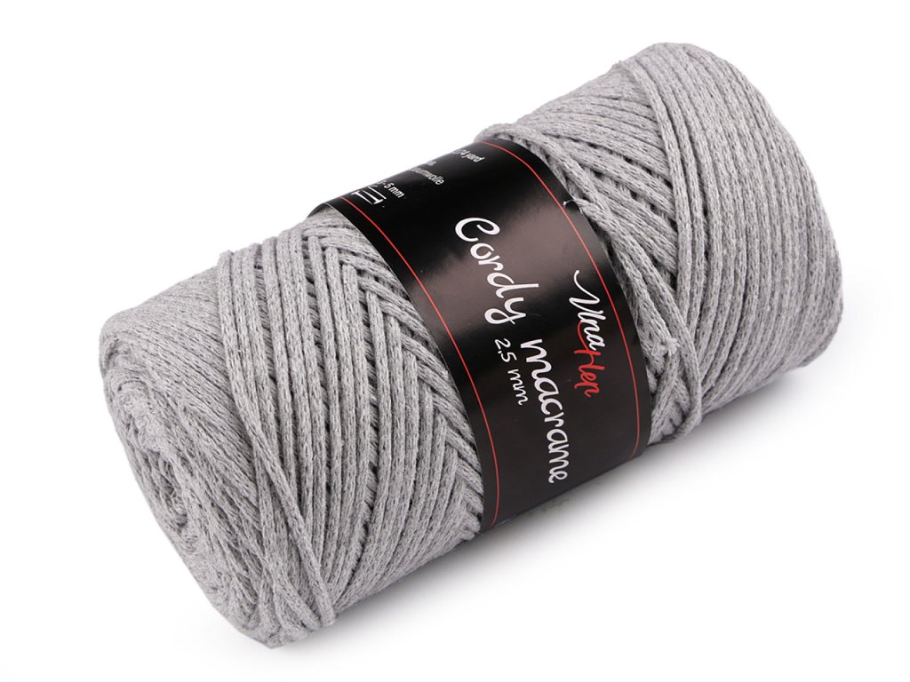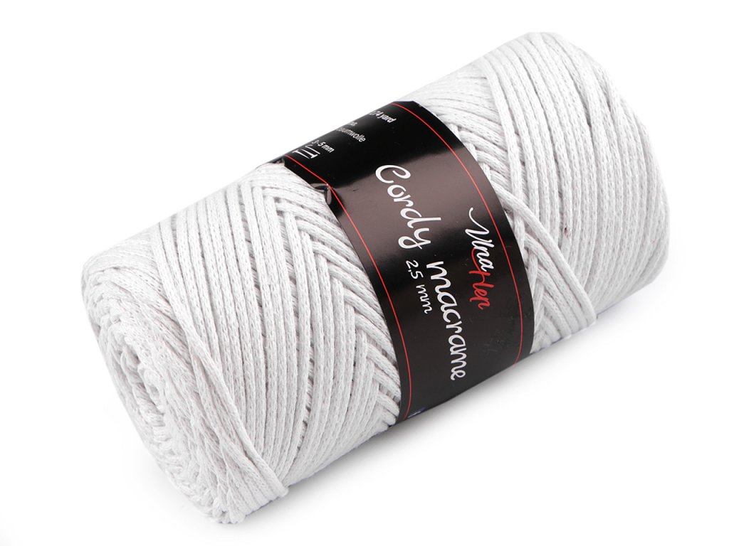 Příze Cordy Macrame je vhodná na pletení nebo háčkování pufů, košíků, koberečků i tašek, ale také na výrobu macrame dekorací. Připomíná provázek. Velikost jehlic: 3 - 5 Velikost háčku: 3 - 5- Průměr: 2,5 mm