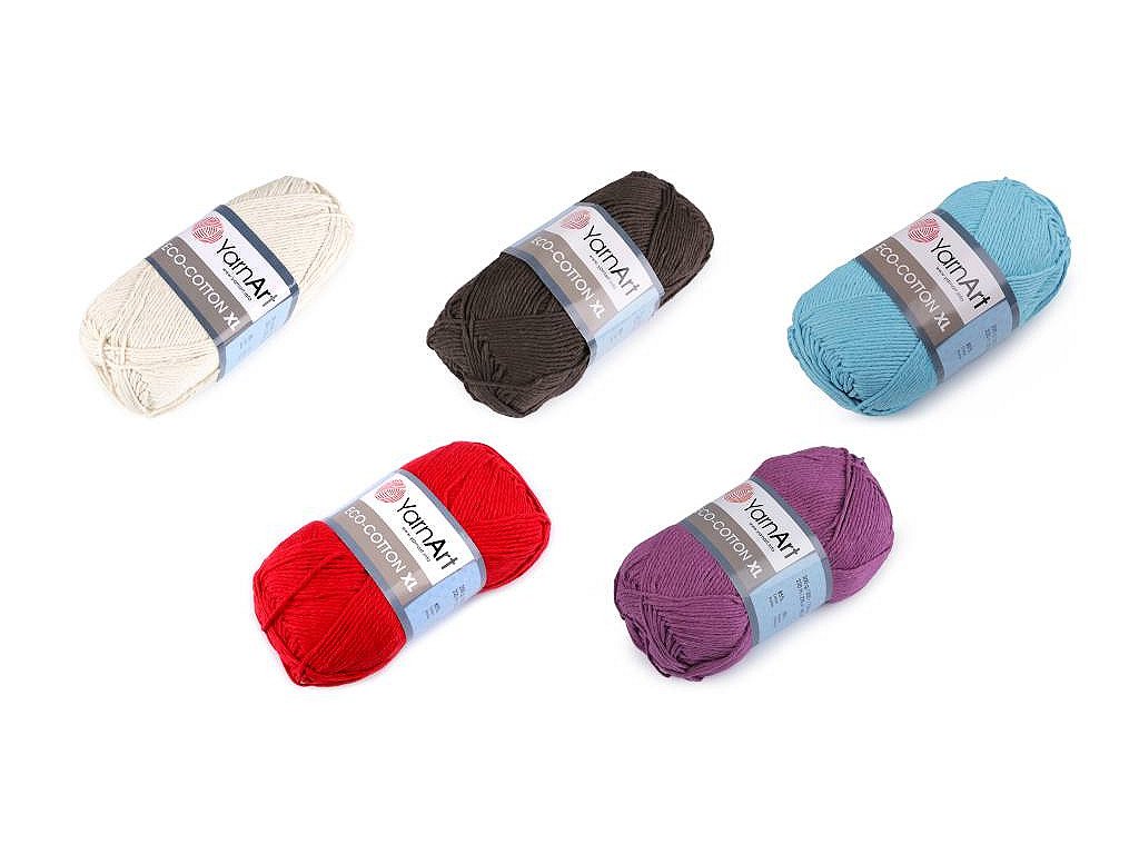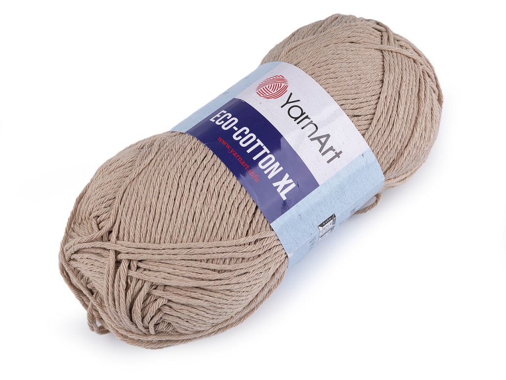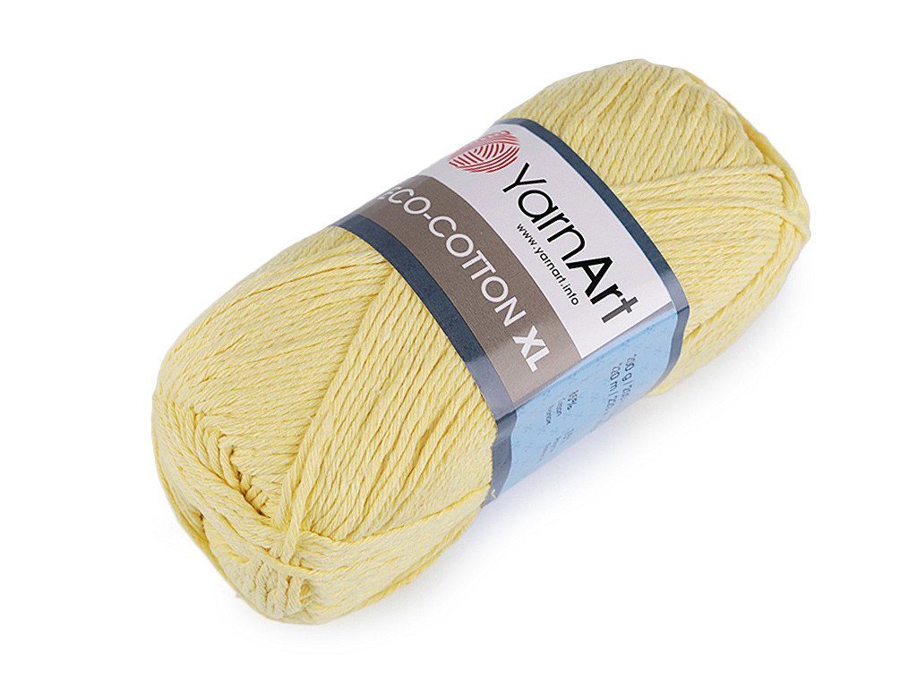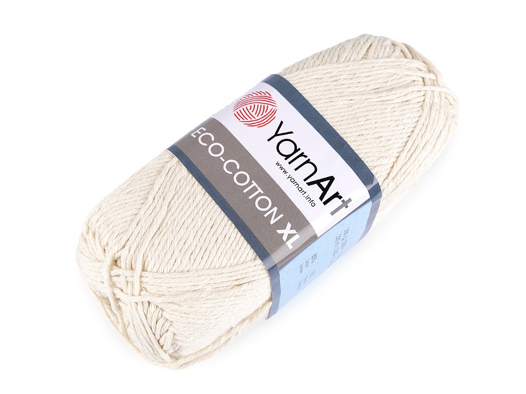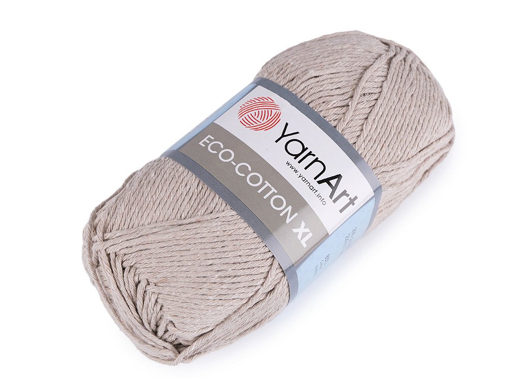 Pletací příze Eco - cotton XL připomíná provázek. Je vhodná na pletení či háčkování dekorací, sedáků, polštářů, tašek apod. Velikost jehlic: 5 Velikost háčku: 4- Hmotnost: 200 g