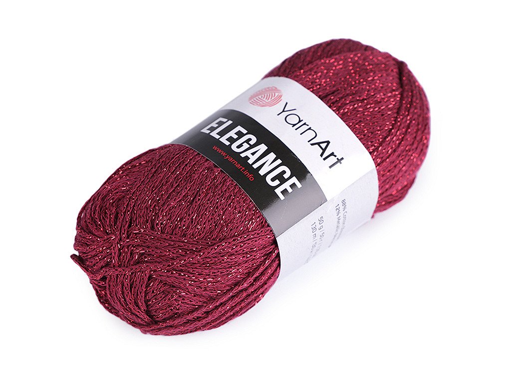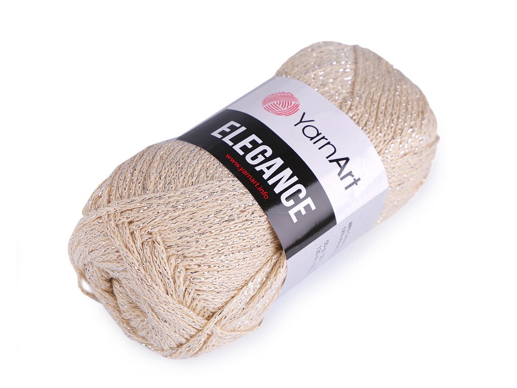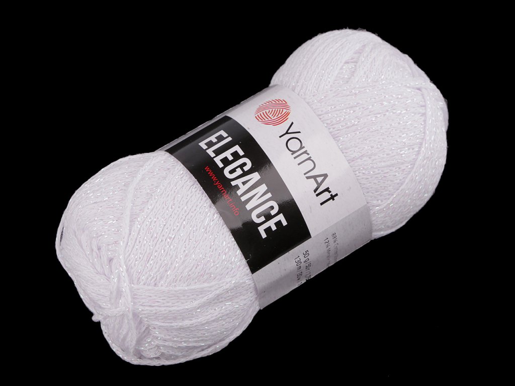 Pletací příze Elegance připomíná provázek. Je protkaná třpytivým lurexem. Můžete z ní uplést či uháčkovat svetříky, šály, čepice apod. Velikost jehlic: 4 Velikost háčku: 4- Hmotnost: 50 g