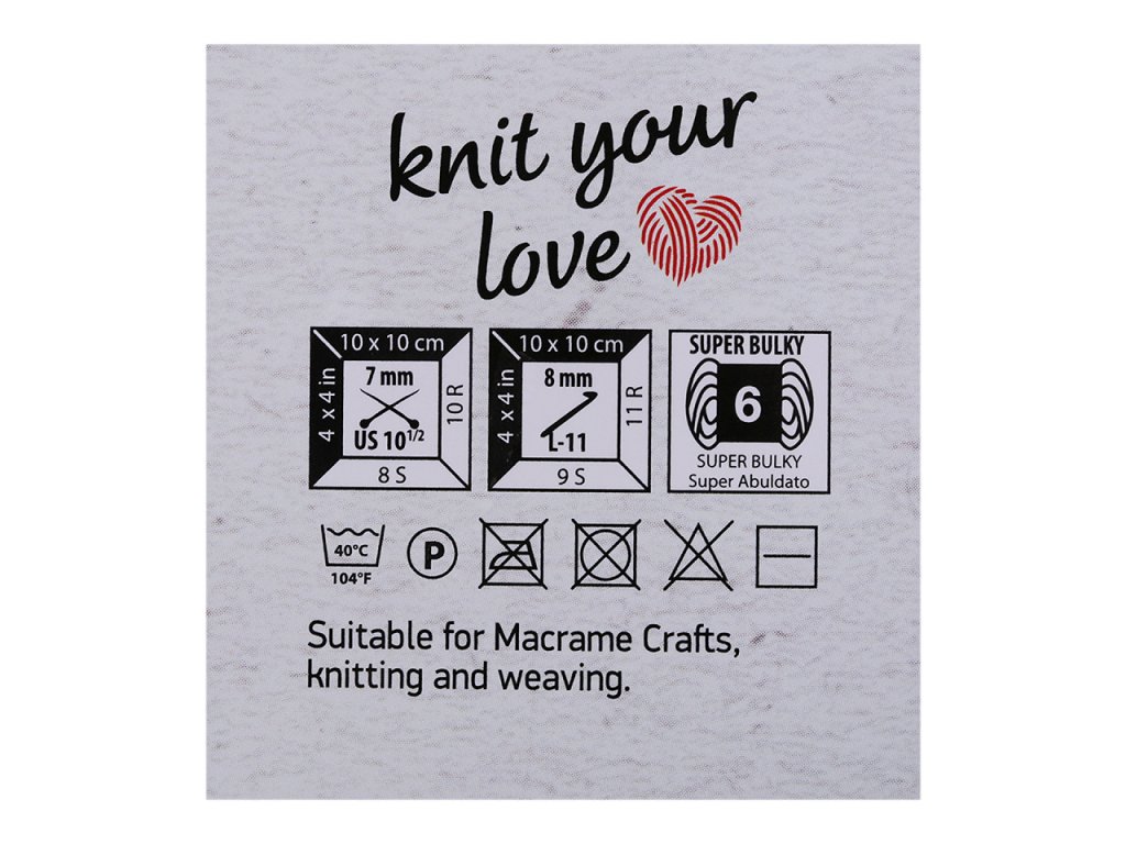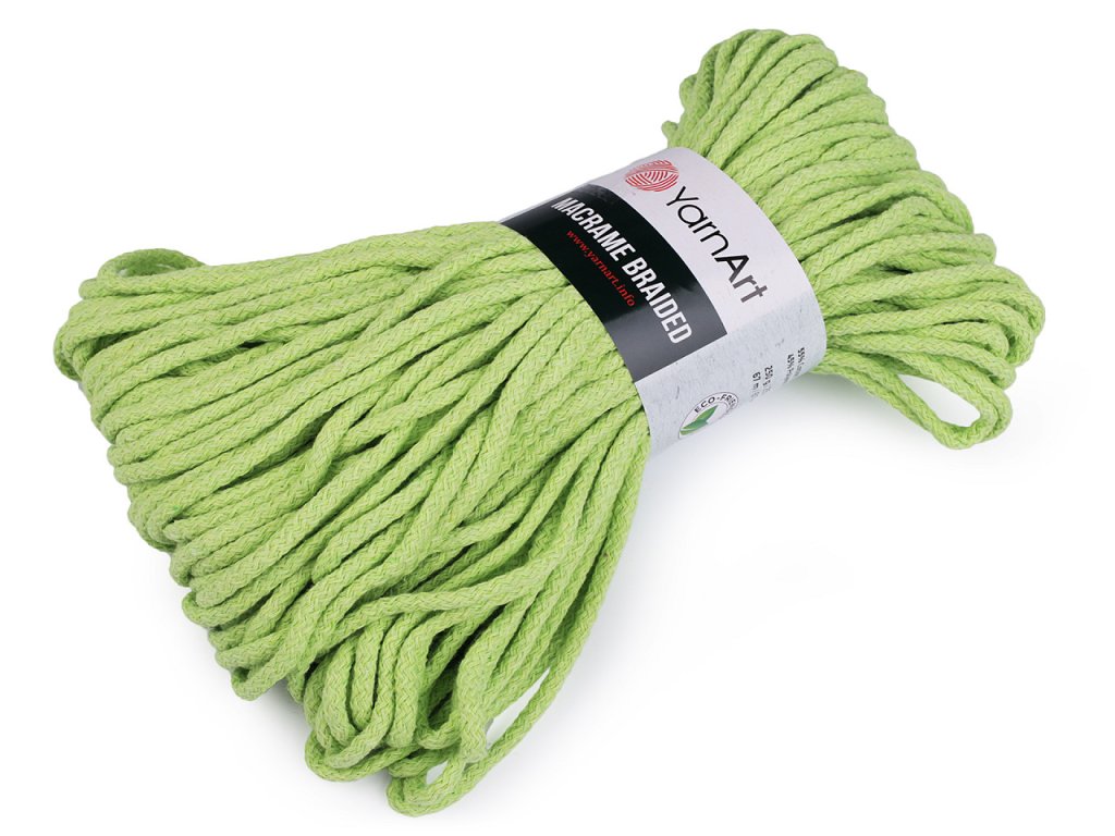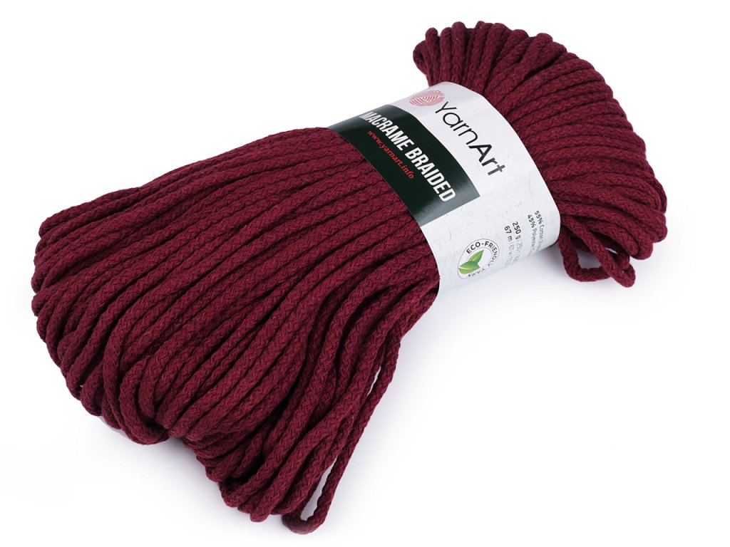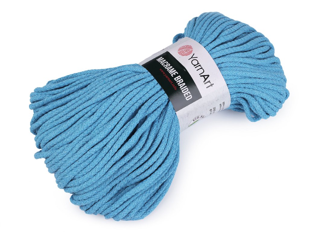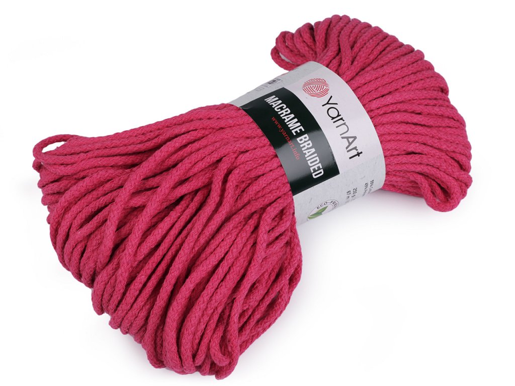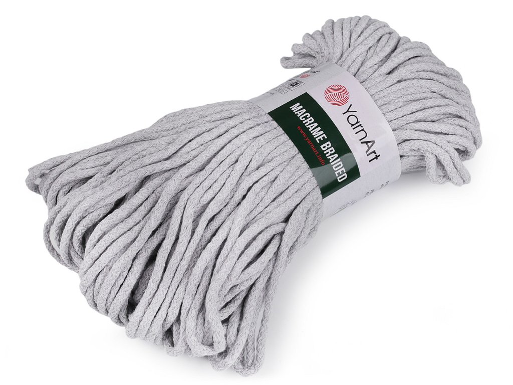 Příze Macrame Braided připomíná provázek. Využijete ji na pletení nebo háčkování pufů, košíků, koberečků i tašek. Je vhodná také na výrobu dekorací technikou drhání (macramé). Velikost jehlic: 7 Velikost háčku: 8- Průměr: 5 mm
