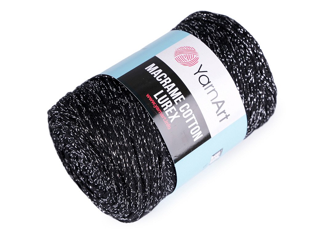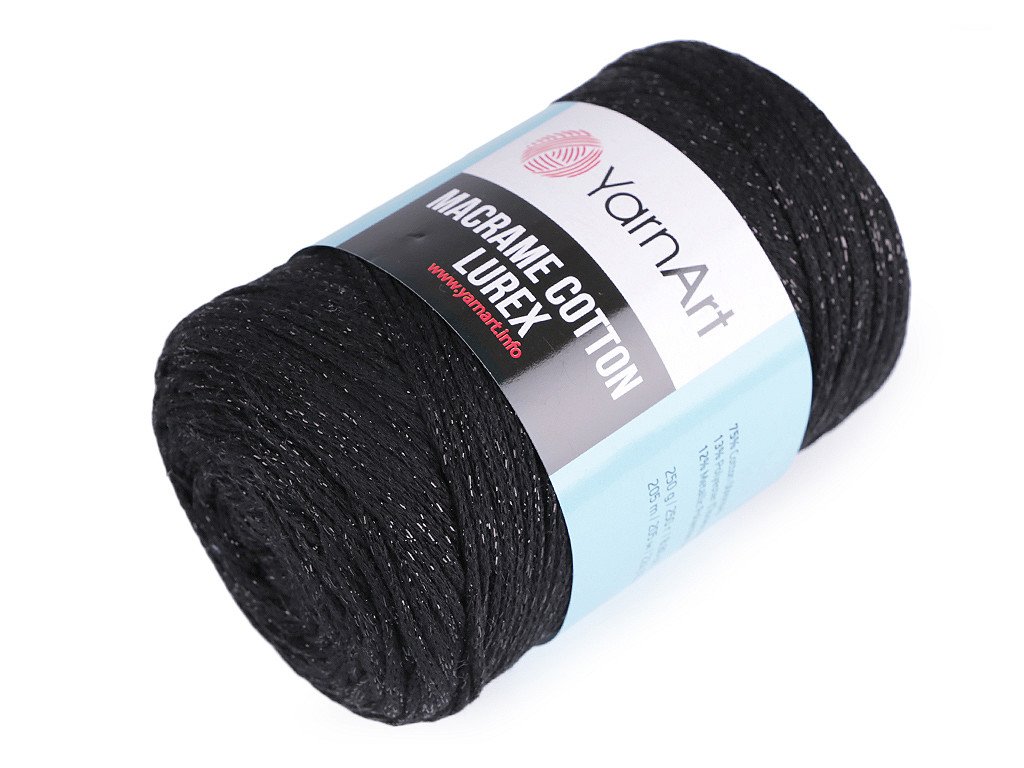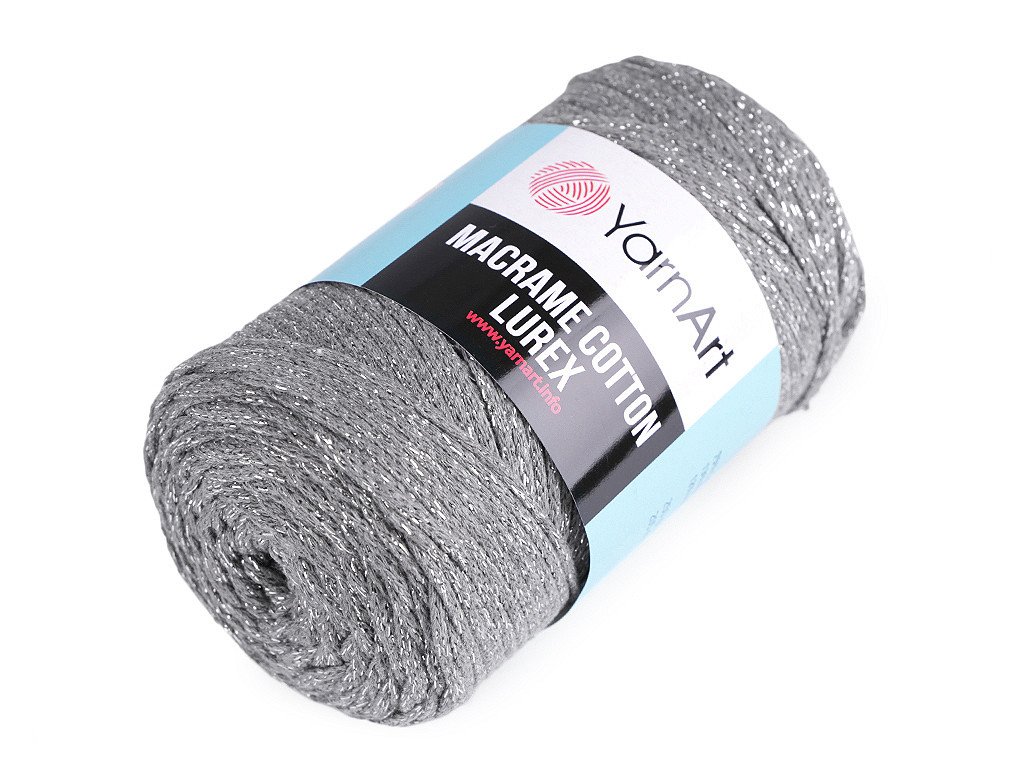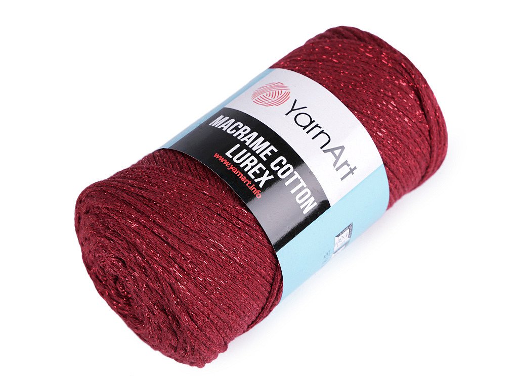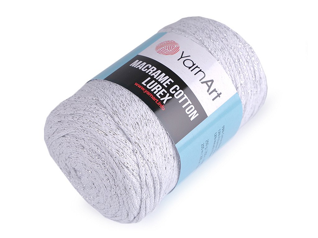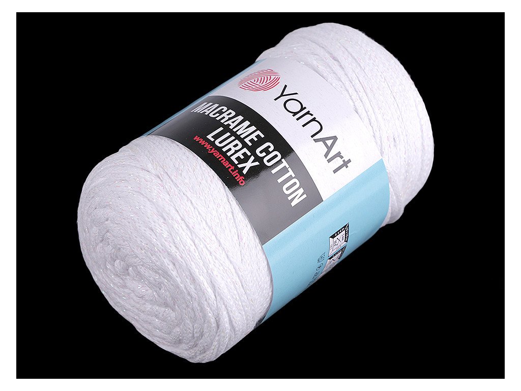Příze Macrame Cotton připomíná provázek a je doplněna třpytivým lurexem. Využijete ji na pletení nebo háčkování pufů, košíků, koberečků i tašek. Velikost jehlic: 5 Velikost háčku: 5- Průměr: cca 2 mm