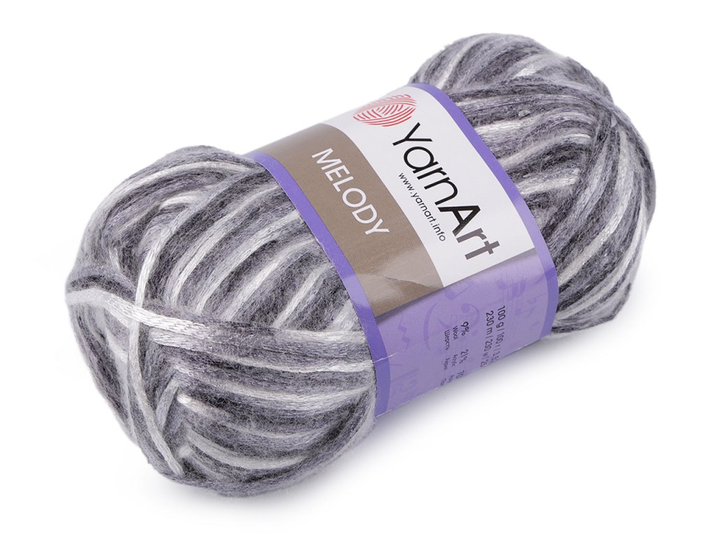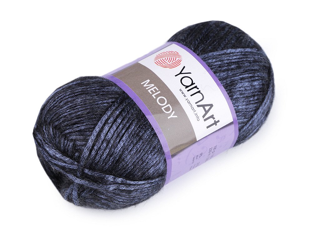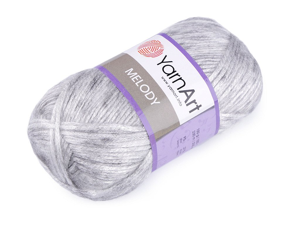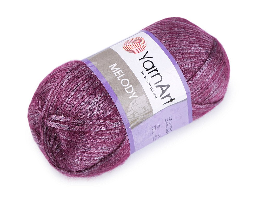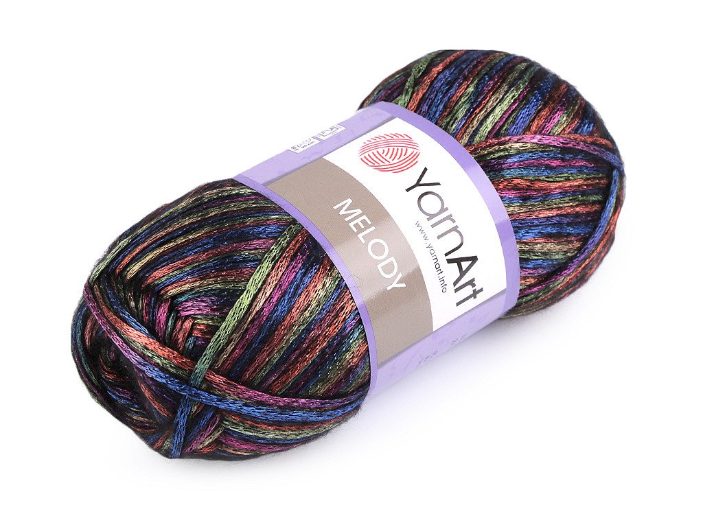 Pletací příze Melody zaujme svým jemným metalickým efektem. Použití: Přízi využijete k háčkování či pletení svetrů, čepic, vest apod. Velikost jehlic: 5 Velikost háčku: 5 Údaje o spotřebě příze najdete na poslední fotografii. Pokud přízi budete párat, je nutné postupovat velice opatrně, aby se nepoškodila. Před pletením / háčkováním doporučujeme udělat zkušební vzorek.- Hmotnost: 100 g