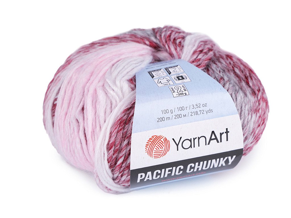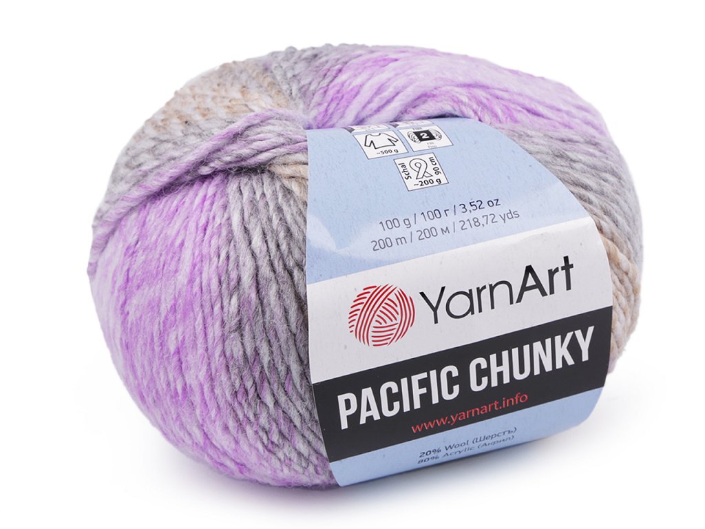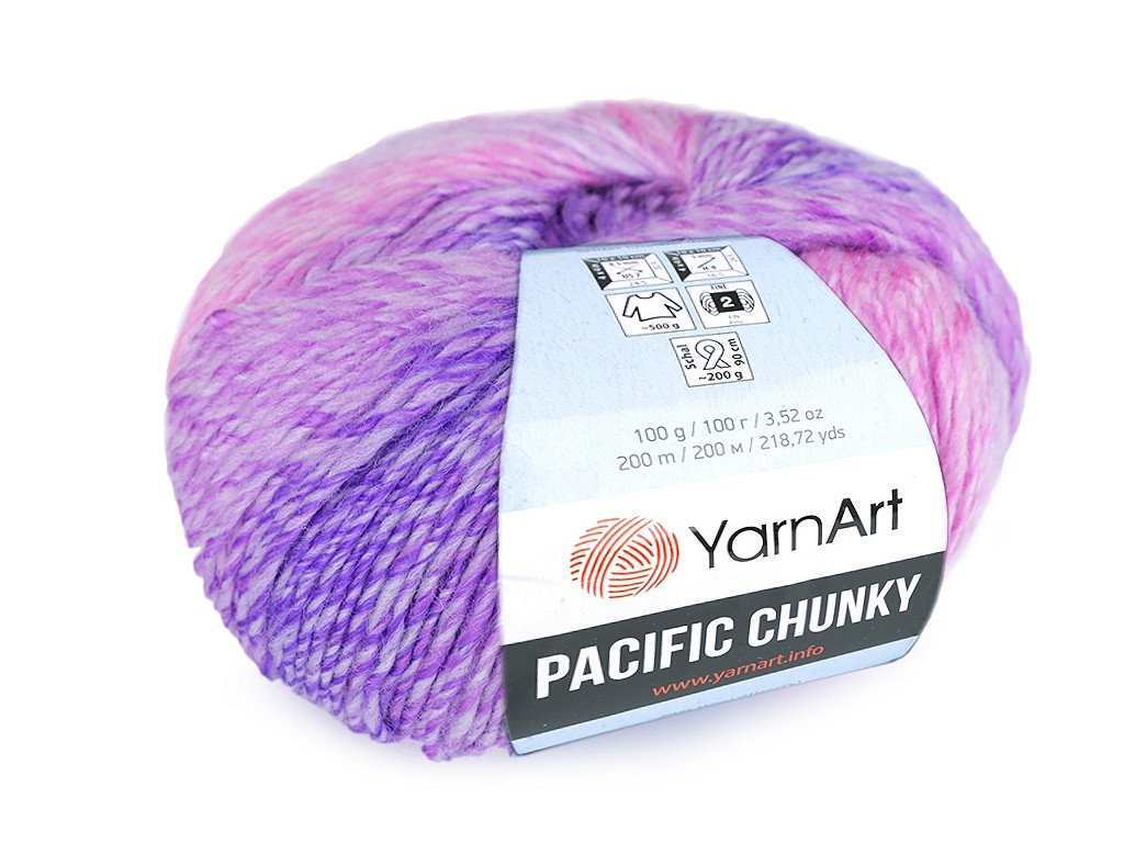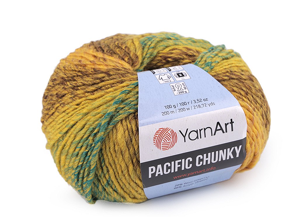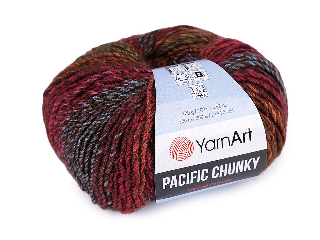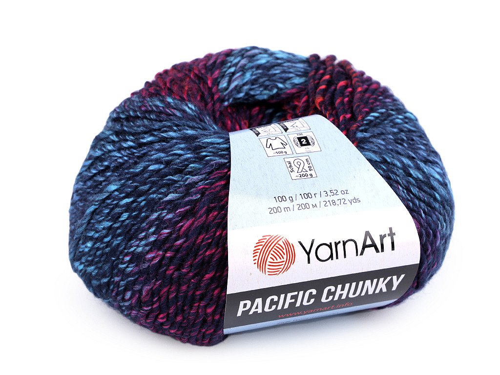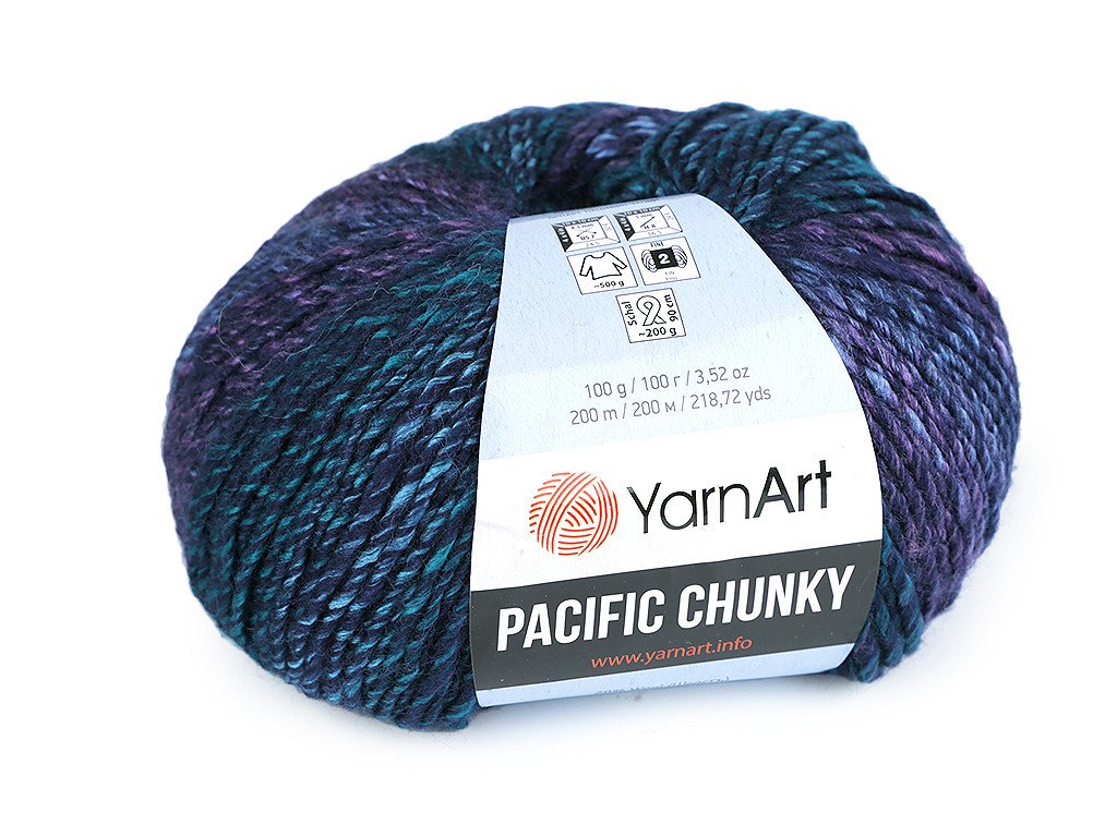 Pletací příze Pacific Chunky zaujme svými barevnými melírovanými přechody, které dodají vašim výrobkům neotřelý vzhled. Je vhodná k pletení či háčkování svetrů, čelenek, vest, čepic apod. Velikost jehlic: 4,5 Velikost háčku: 5- Hmotnost: 100 g