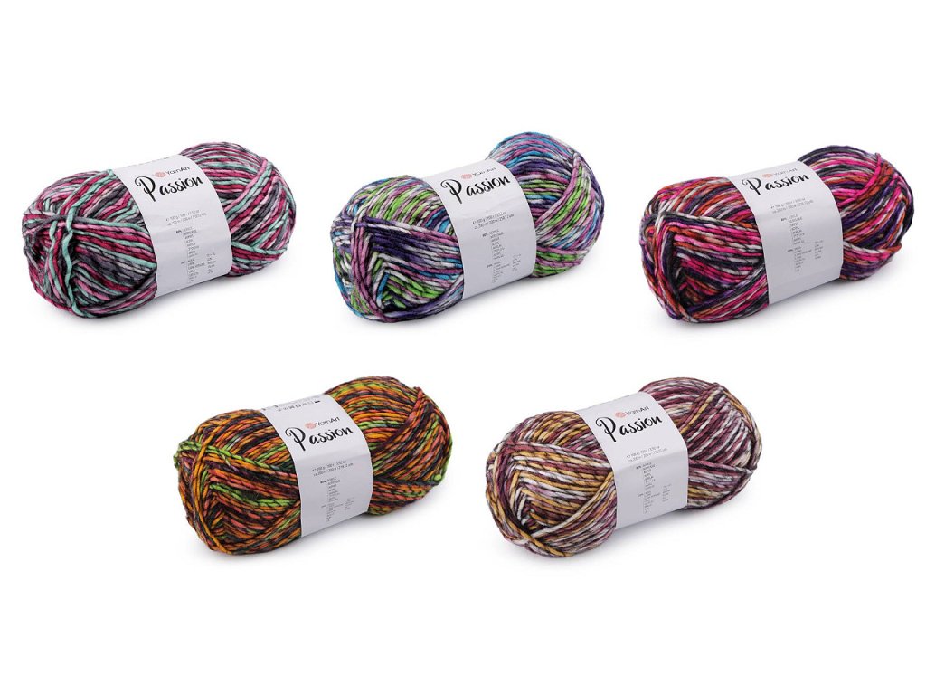 S pletací přízí Passion, s podílem vlny, vytvoříte zajímavé výrobky. Melírovaný efekt dokáže udělat s pletením či háčkováním divy. Můžete z ní vyrobit svetry, šály, vesty, hřejivé ponožky, čepice apod. Velikost jehlic: 5 Velikost háčku: 5- Hmotnost: 100 g