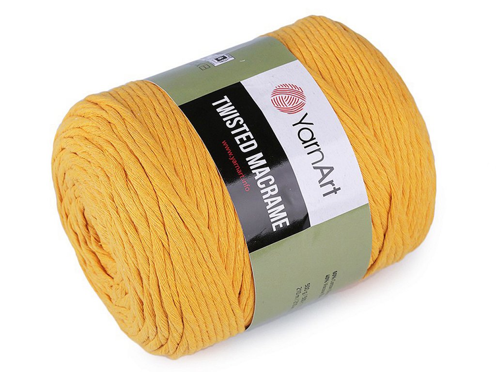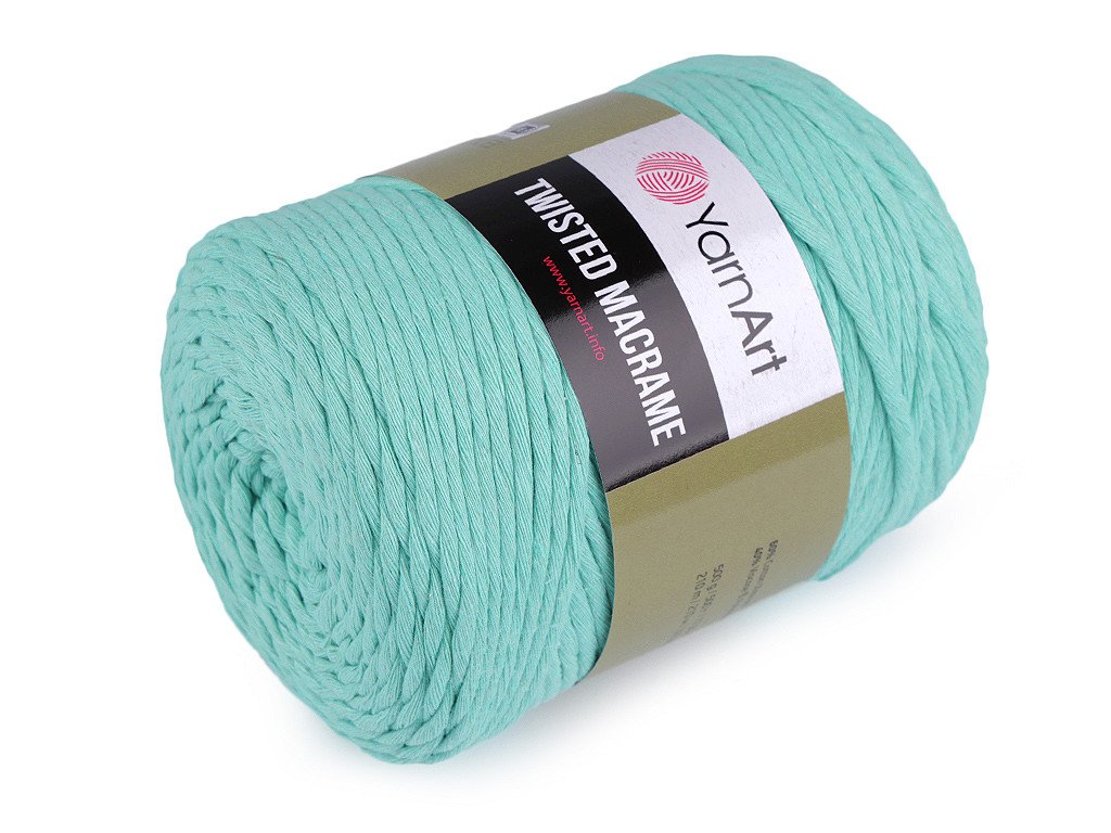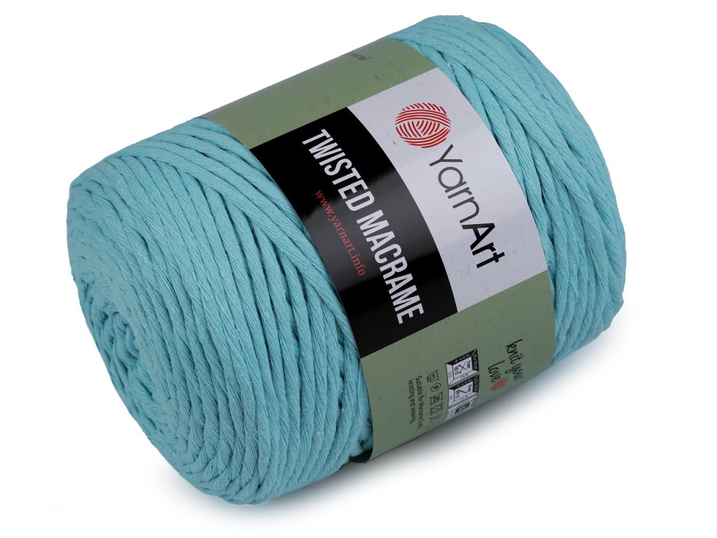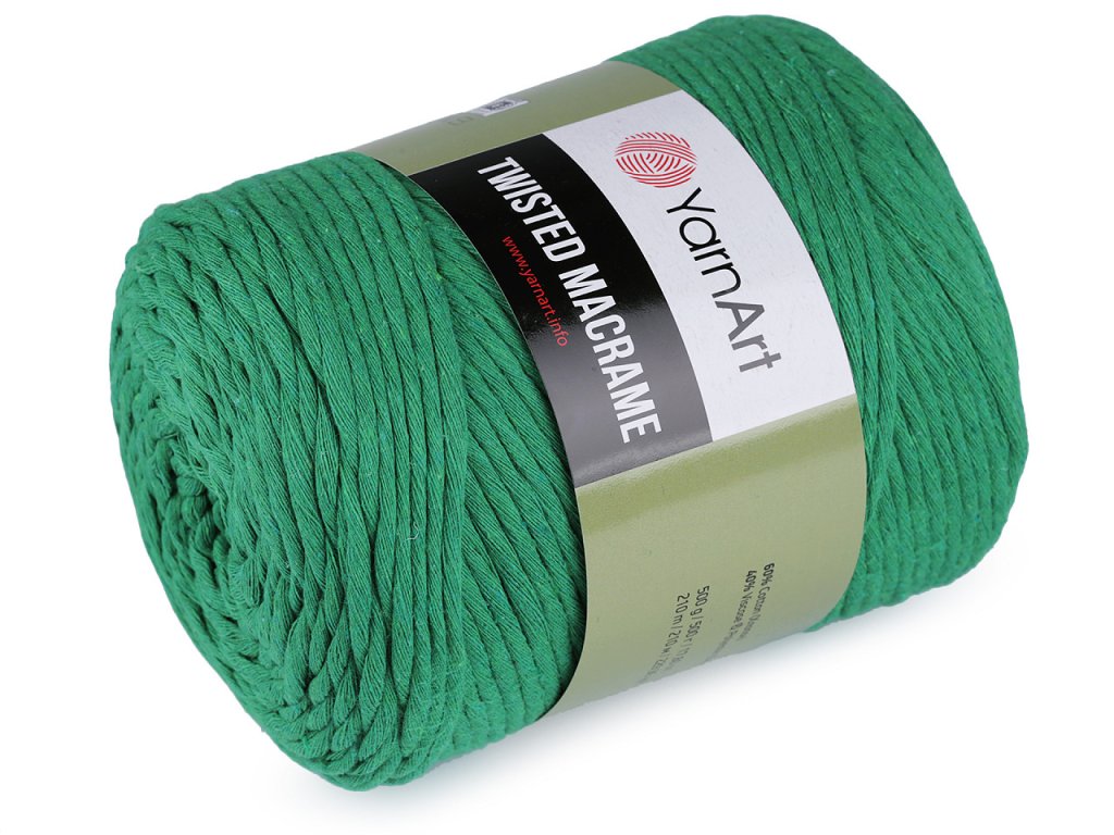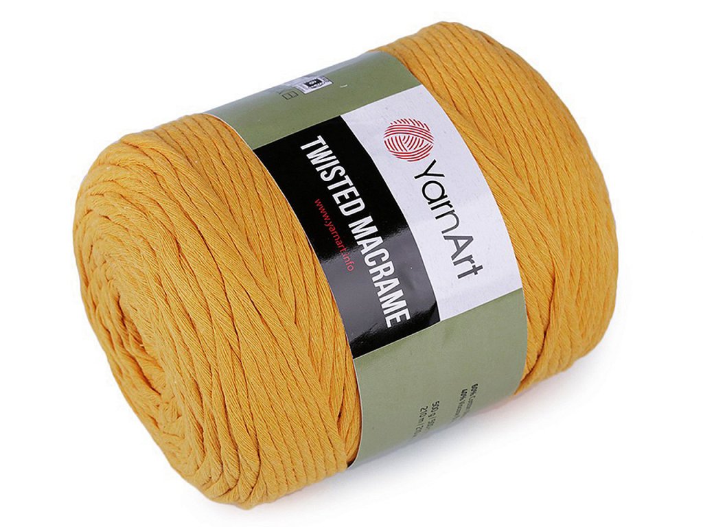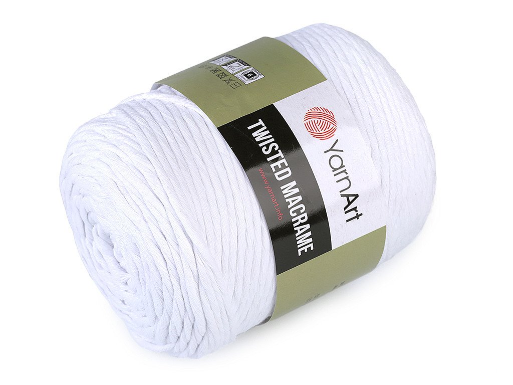 Příze Twisted Macrame je kroucená a připomíná provázek. Využijete ji na pletení nebo háčkování pufů, košíků, koberečků i tašek. Je vhodná také na výrobu macramé dekorací. Velikost jehlic: 9 Velikost háčku: 10 Vzorek na fotografii (88 x 27 cm) byl uháčkován z 1 klubíčka, háčkem č. 10.- Průměr: cca 3 mm