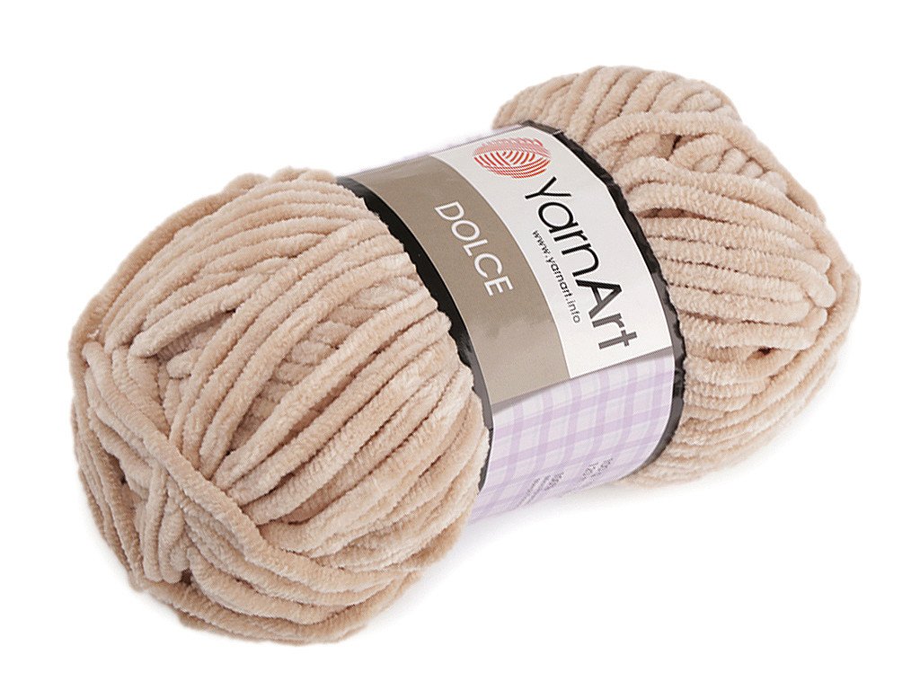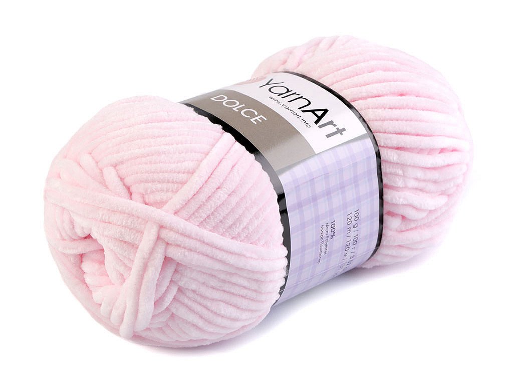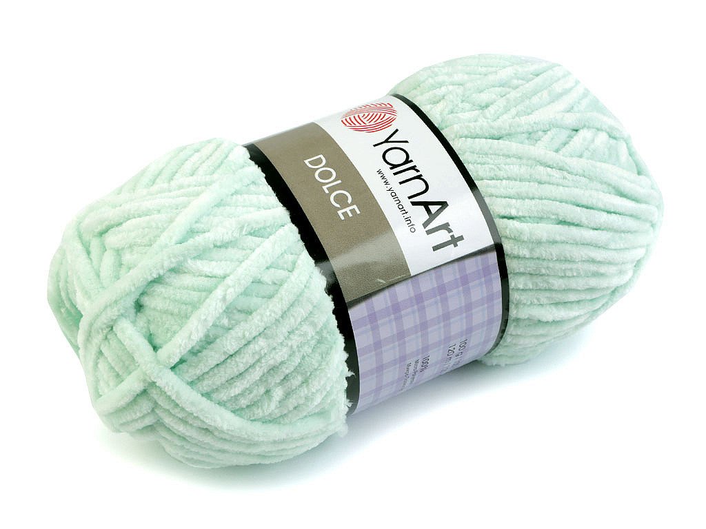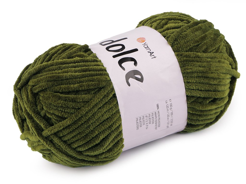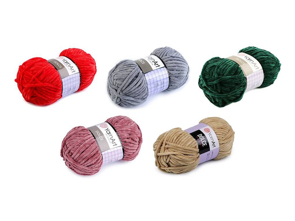 Žinylková příze Dolce je tak měkká a hebká, že se do ní zamilujete na první dotek. Navíc je velice lehká. Přízi využijete na pletení svetrů, šálů, čepic, ponožek apod. Velikost jehlic: 4,5 Velikost háčku: 6,5 Údaje o spotřebě příze najdete na poslední fotografii. Odstíny barev se mohou lehce lišit z důvodu různých výrobních šarží. Vzorek na fotografii (40 x 32 cm) byl uháčkován z 1 klubíčka, háčkem č. 6,5.- Průměr: 6 mm