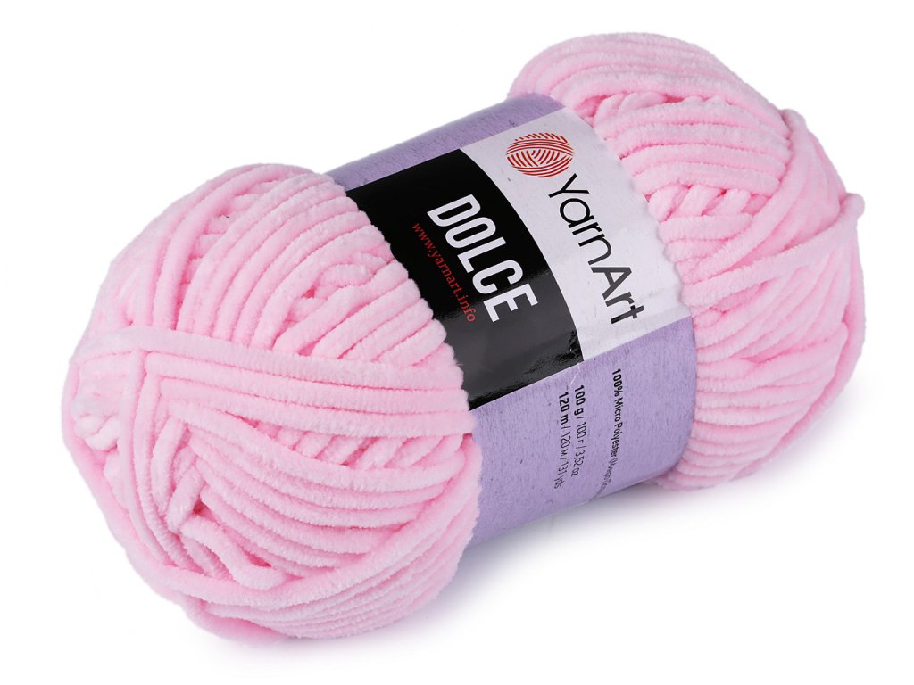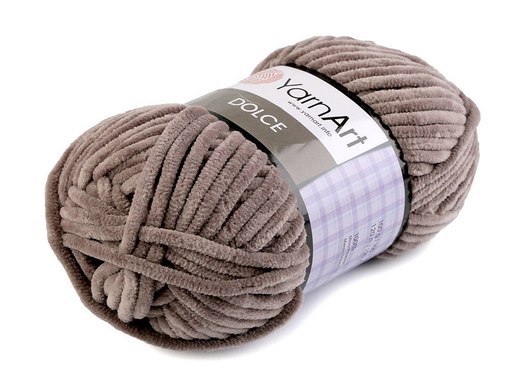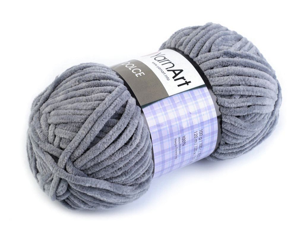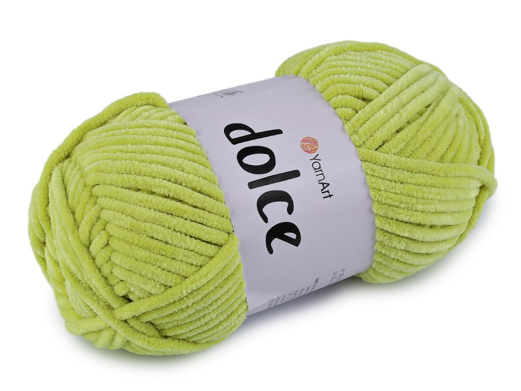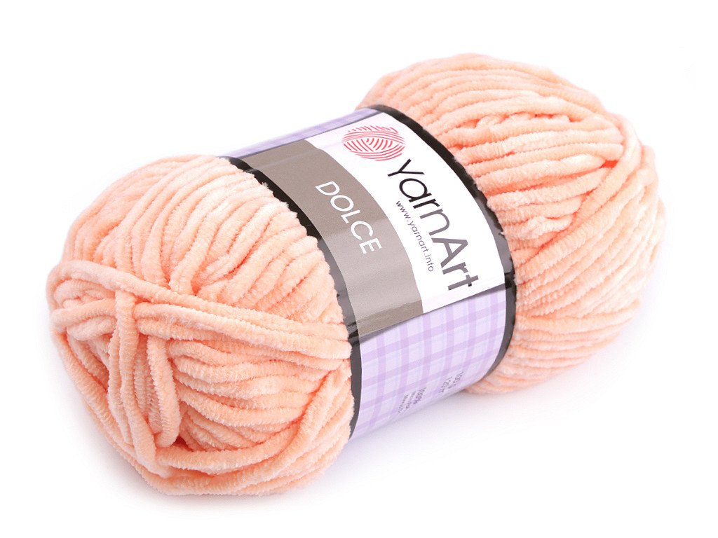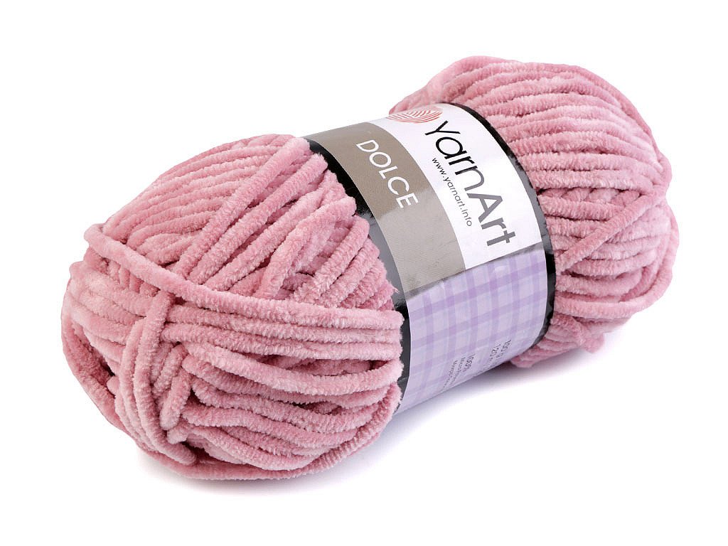 Žinylková příze Dolce je tak měkká a hebká, že se do ní zamilujete na první dotek. Navíc je velice lehká. Přízi využijete na pletení svetrů, šálů, čepic, ponožek apod. Velikost jehlic: 4,5 Velikost háčku: 6,5 Údaje o spotřebě příze najdete na poslední fotografii. Odstíny barev se mohou lehce lišit z důvodu různých výrobních šarží. Vzorek na fotografii (40 x 32 cm) byl uháčkován z 1 klubíčka, háčkem č. 6,5.- Průměr: 6 mm
