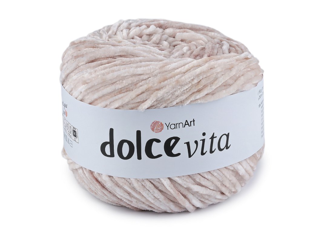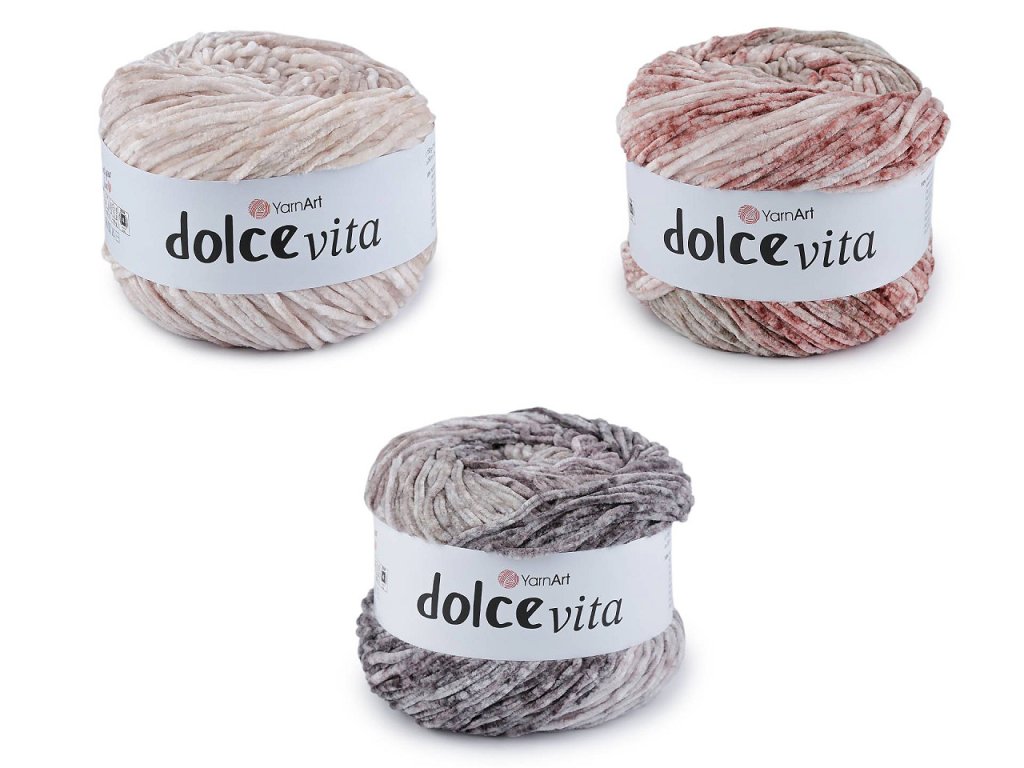 Žinylková příze Dolce vita je na dotek velmi měkká a hebká. Melírovaný efekt dodá výrobkům atraktivitu. Přízi využijete na pletení svetrů, šálů, čepic, ponožek apod. Pokud přízi budete párat, je nutné postupovat velice opatrně, aby se nepoškodila. Před pletením / háčkováním doporučujeme udělat zkušební vzorek. Velikost jehlic: 4,5 Velikost háčku: 5- Průměr: 4 mm