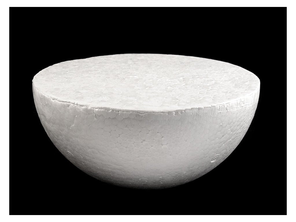 Polystyrenová polokoule je vhodná k tvorbě různých dekorací. Můžete ji ozdobit stuhami nebo umělými rostlinami a plody. Je vhodná také jako model k různým výzkumům pro školy. Spodní část polotovaru je ze spodní strany rovná, plná.- Průměr: 19 cm