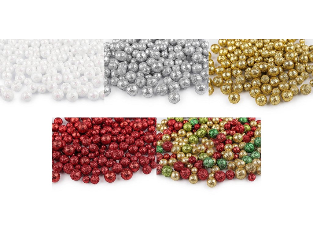 Polystyrenové kuličky s glitry mix 3 velikostí