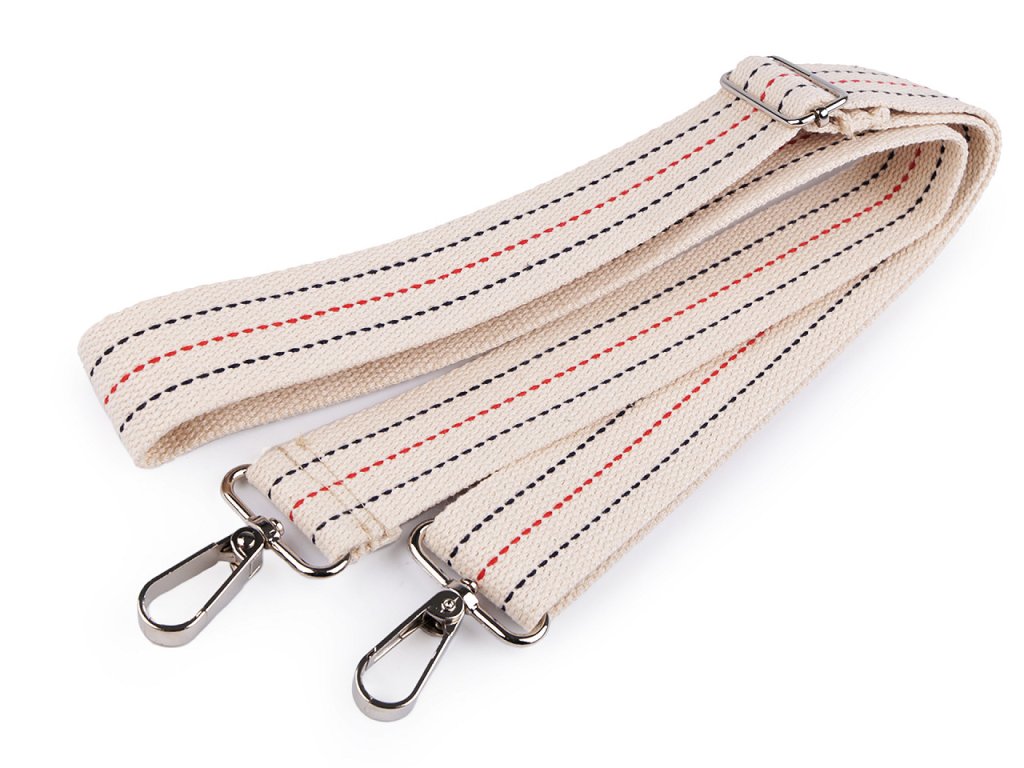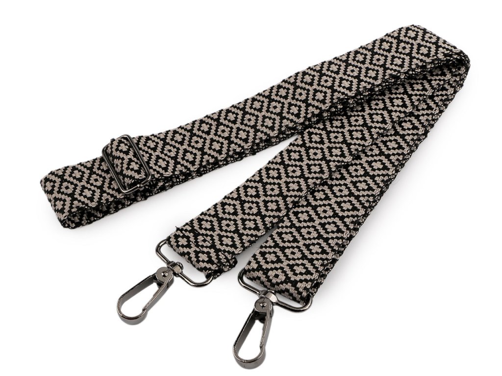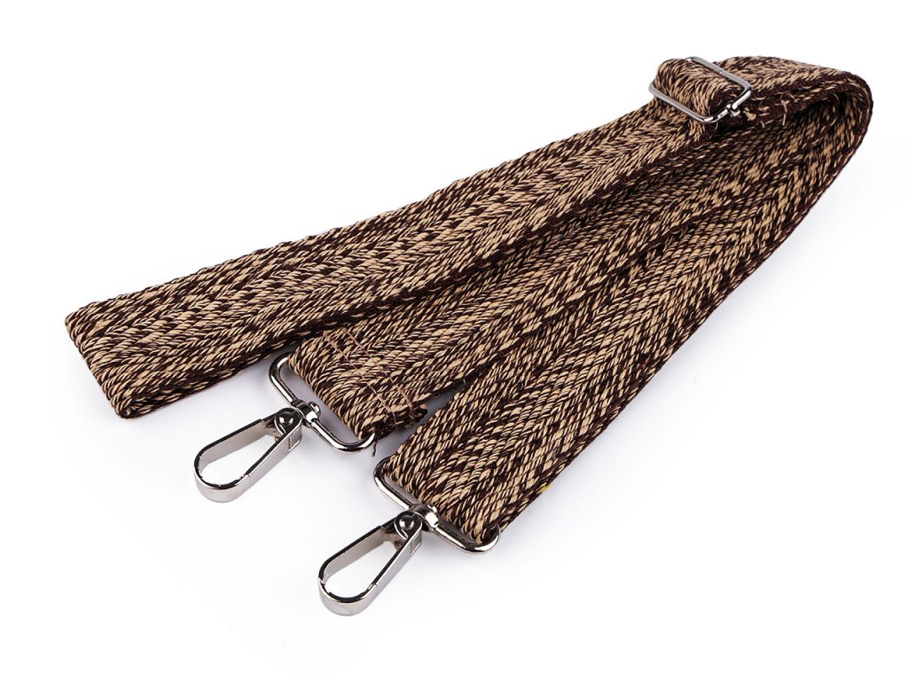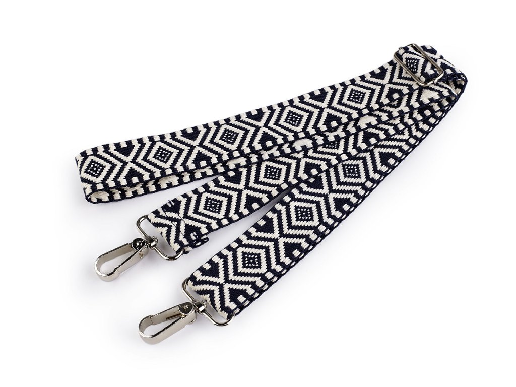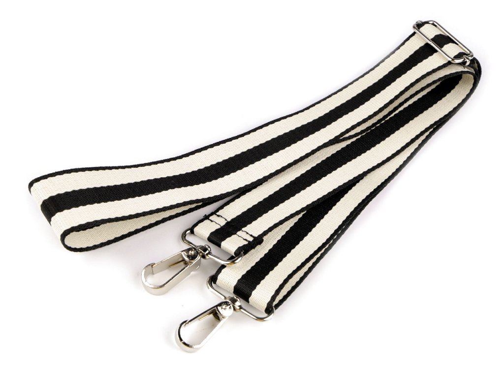 Textilní popruh má z každé strany kovovou karabinu, takže ho ke kabelce či tašce lehce připnete. Délku můžete regulovat.- Šíře: 3,8 cm