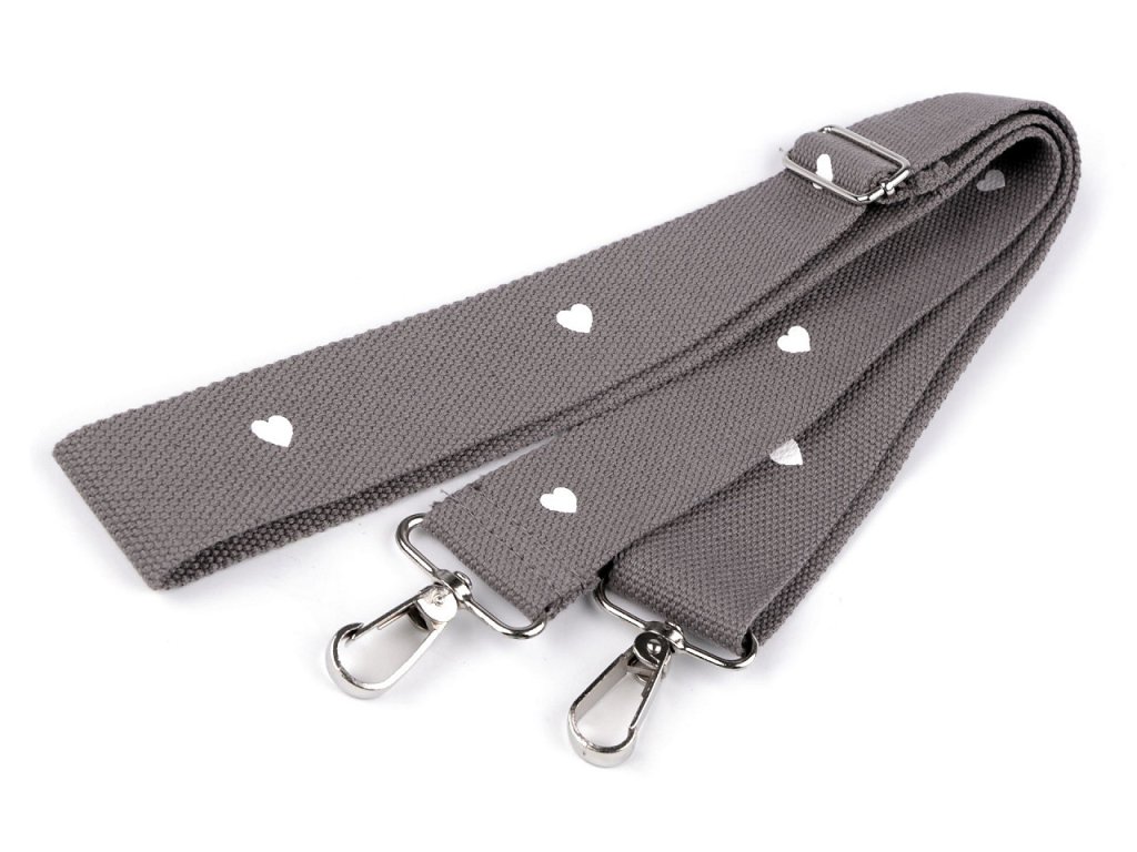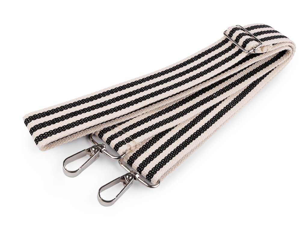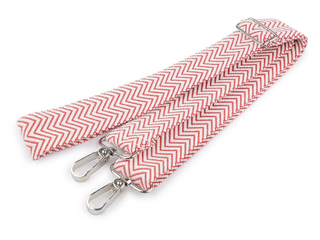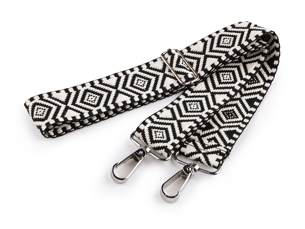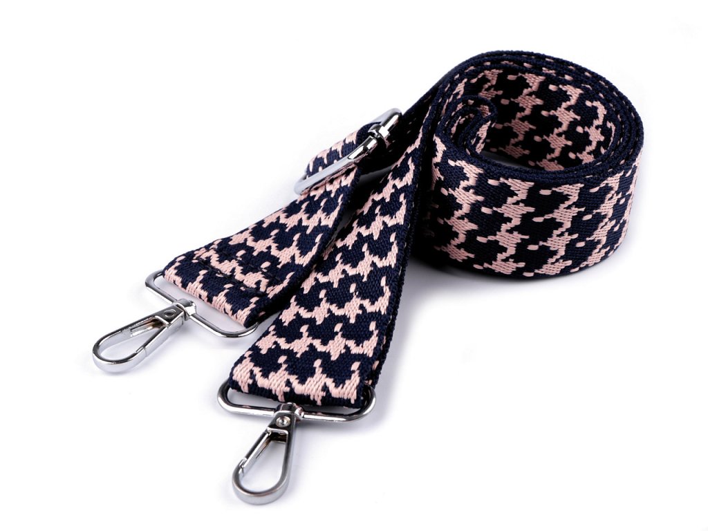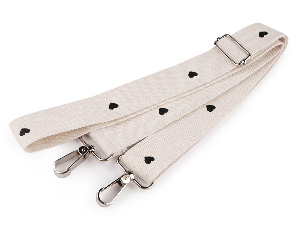 Textilní popruh má z každé strany kovovou karabinu, takže ho ke kabelce či tašce lehce připnete. Délku můžete regulovat.- Šíře: 3,8 cm