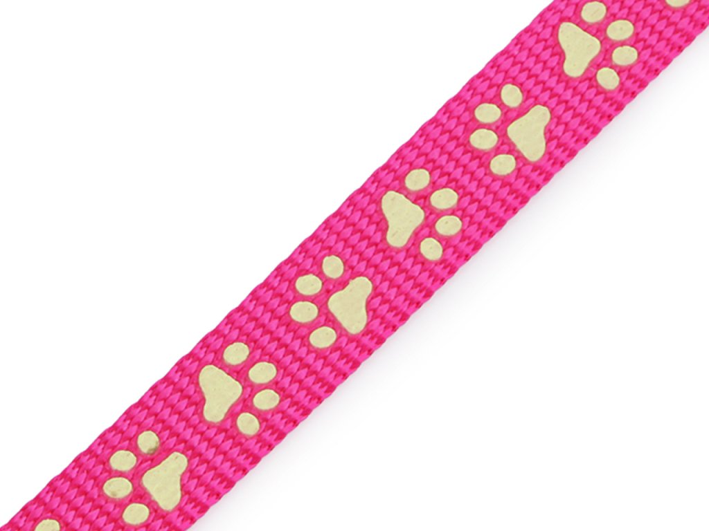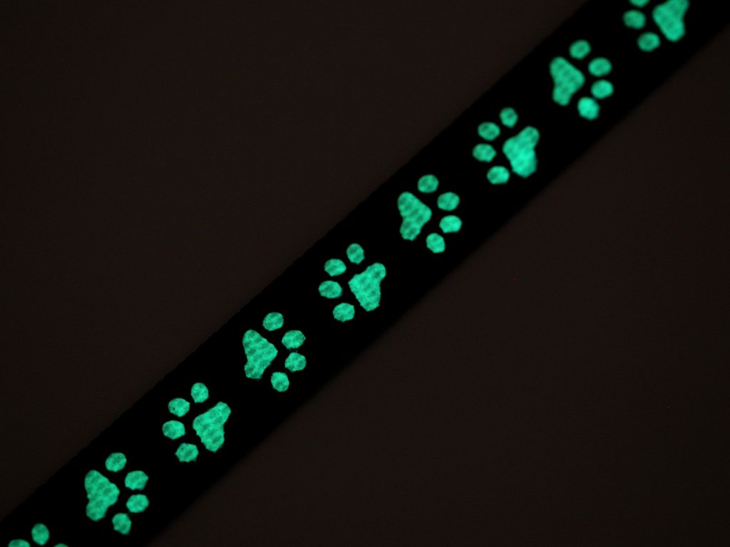 Popruh s motivy tlapek je jako stvořený na výrobu obojků, postrojů a vodítek. Můžete ho ale také využít na batohy nebo tašky. Motivy tlapek navíc ve tmě svítí, a tím zajišťují lepší viditelnost vašeho mazlíčka.- Šíře: 15 mm