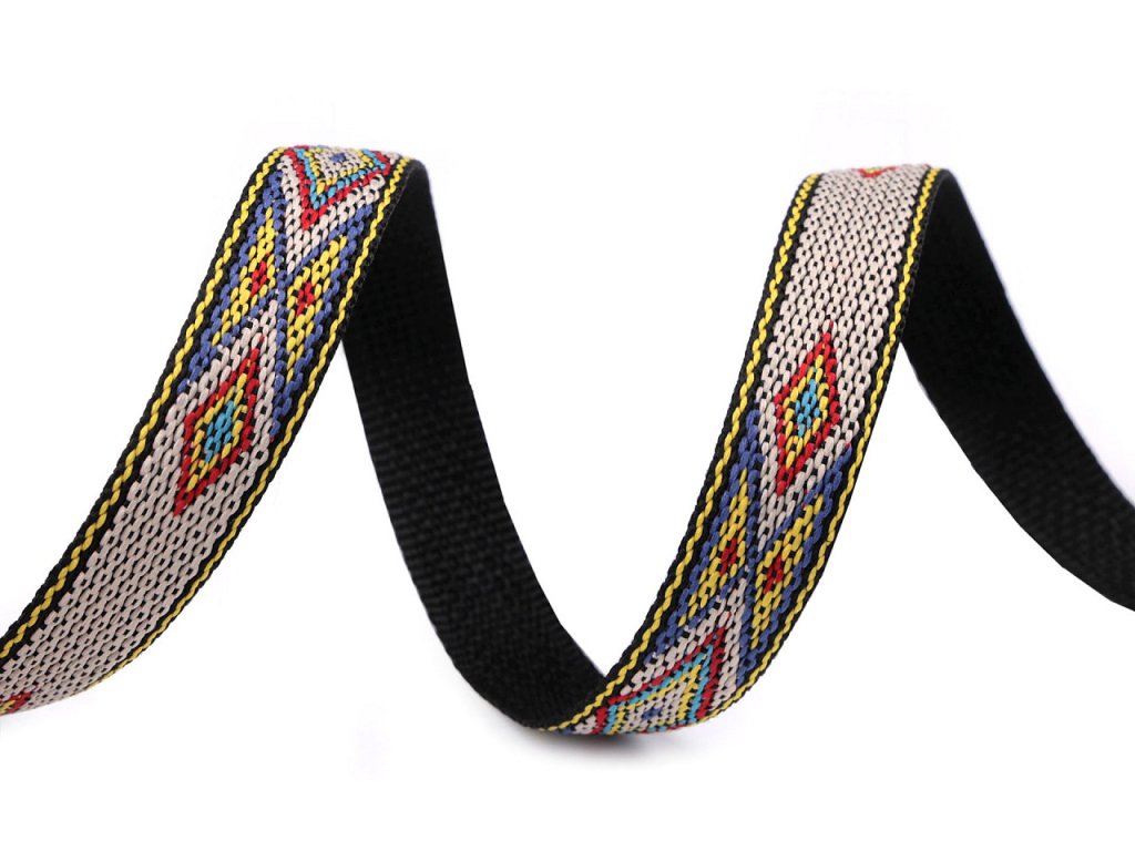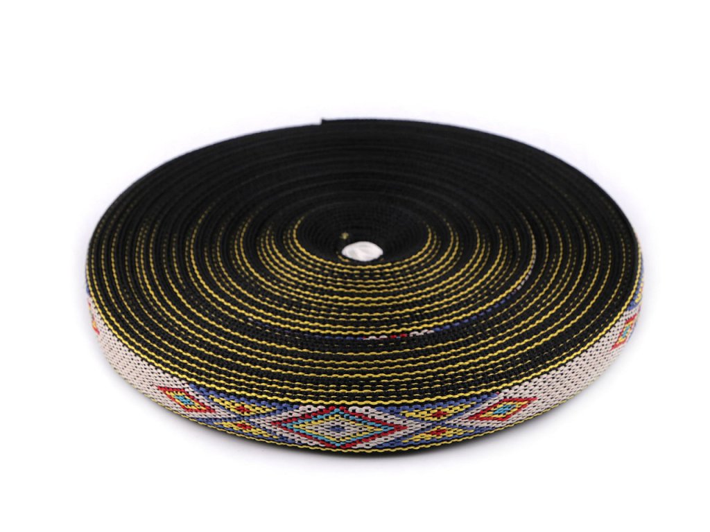 Polypropylénový popruh se používá na batohy a tašky. Dále je vhodný k lemování textilních výrobků a na výplety čalouněného nábytku apod. Motiv na popruhu je jednostranný.- Šíře: 20 mm