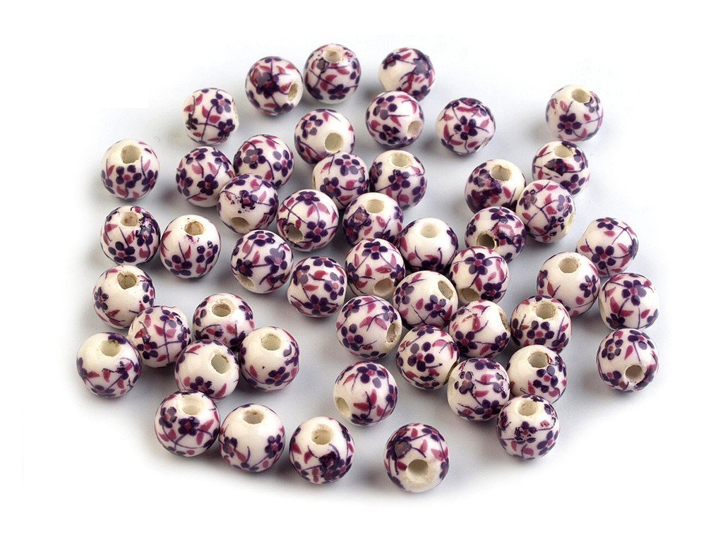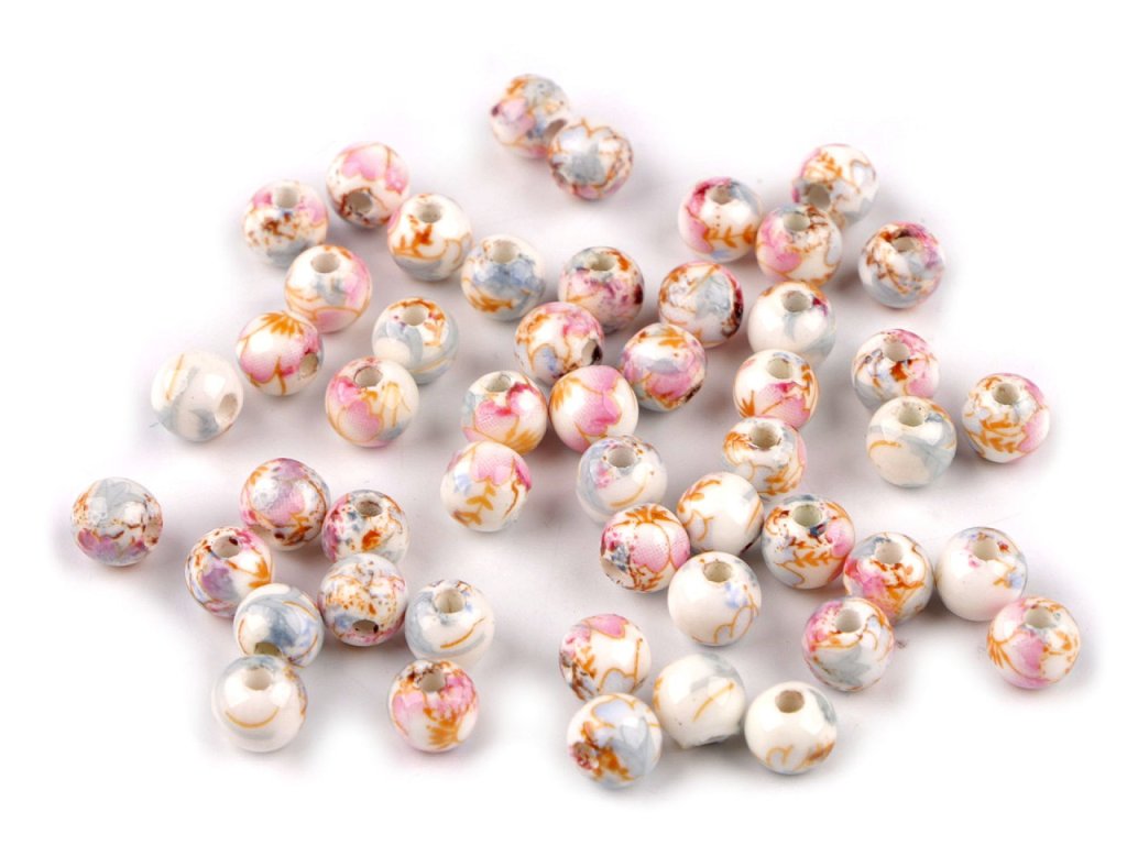 Průvlek 1,75 mm.Porcelánové korálky v sobě spojují robustnost hlíny a ušlechtilost porcelánu s povrchovou úpravou. Velmi dobrá volba pro bižuterii s výrazným autorským rukopisem. Doporučujeme kombinovat s korálky z jiných materiálů, například minerály, perletí nebo dřevěnými korálky pro šperky s etno charakterem.- Průměr: 6 mm